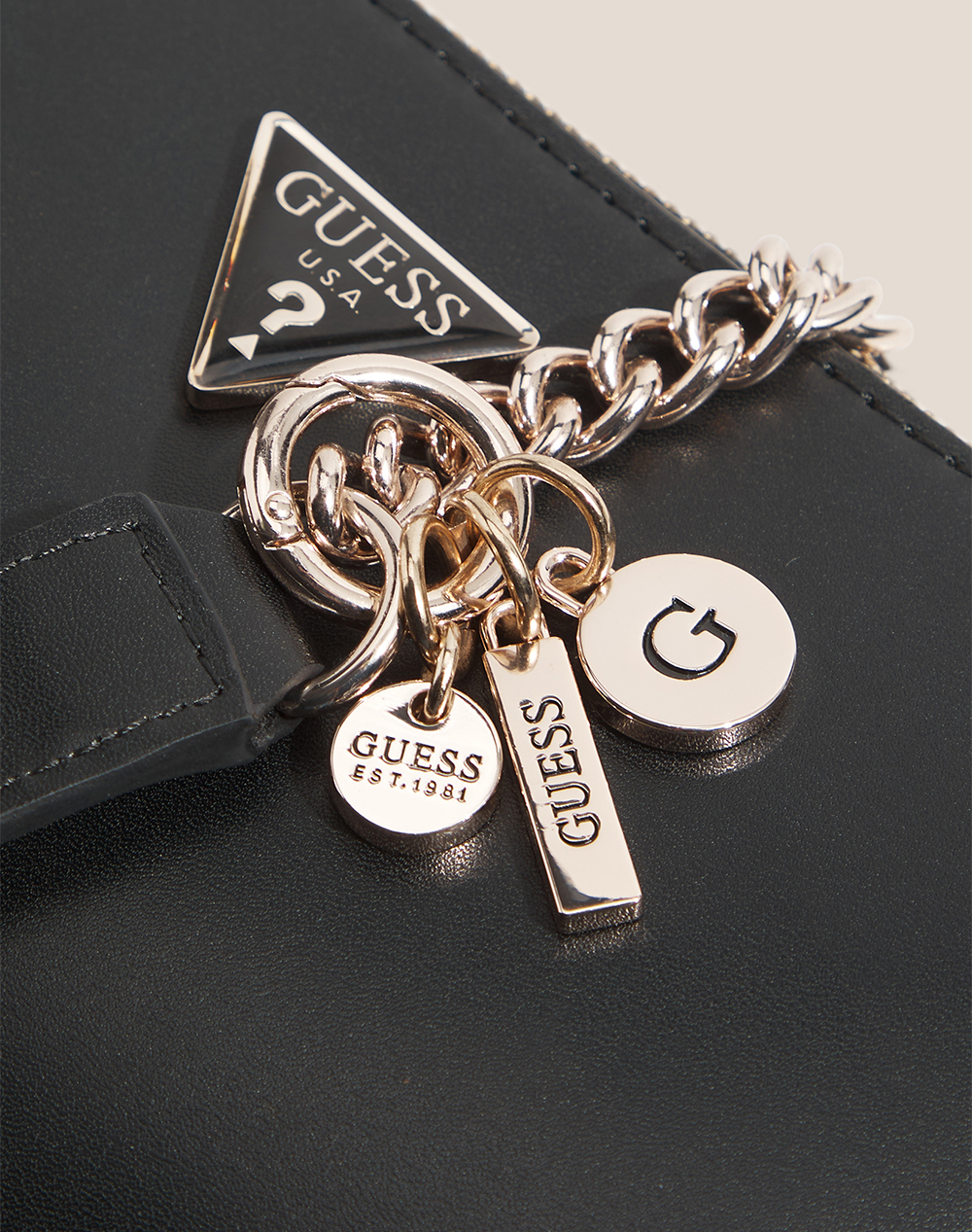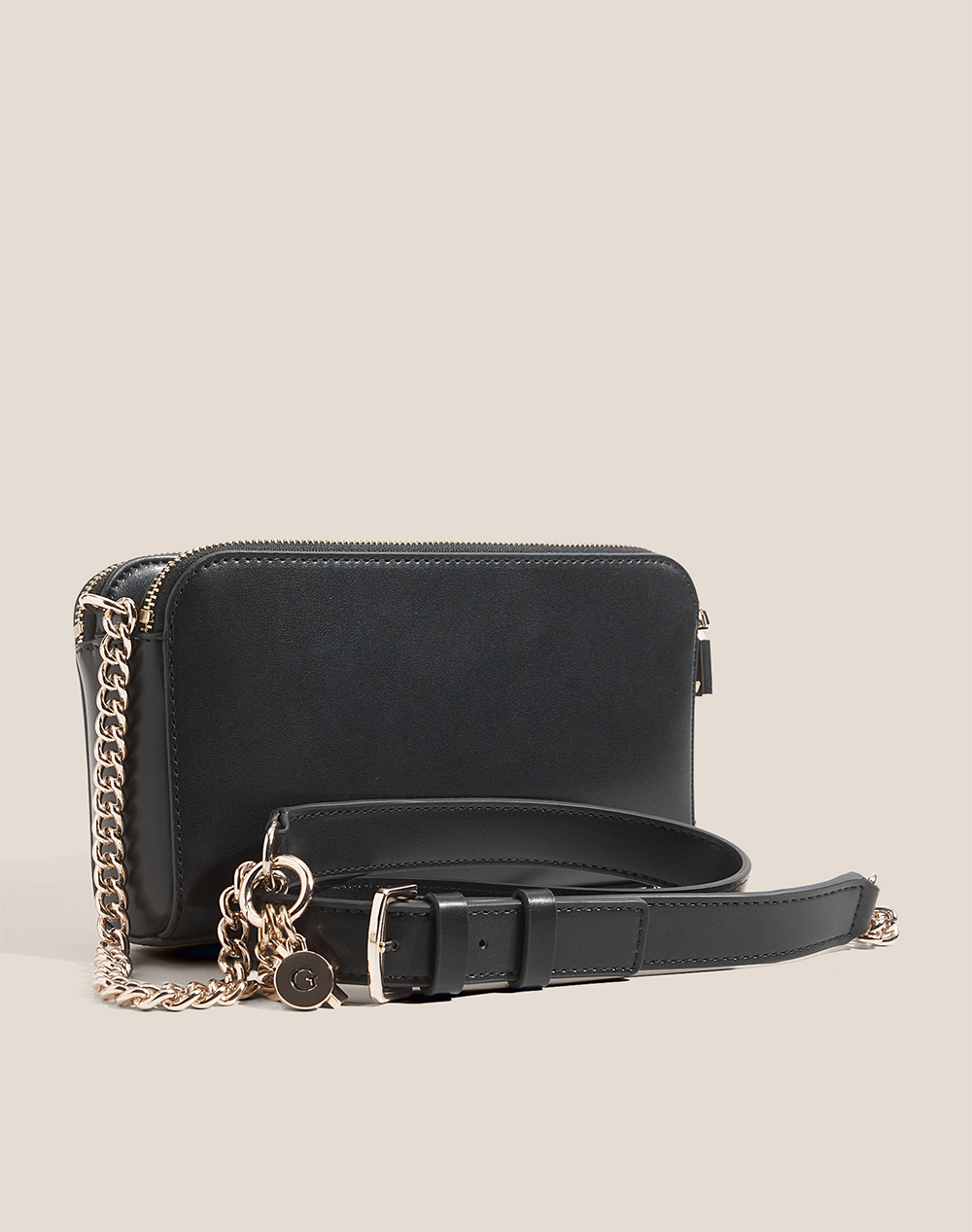 Γυναικεία τσάντα χιαστί, τρίχωρη, με λεπτομέρεια λογότυπο στη μία όψη και λουράκι αλυσίδα. Διαστάσεις: 23 x 12.5 x 5εκ. (Σύνθεση: 100% Πολυουρεθάνη)