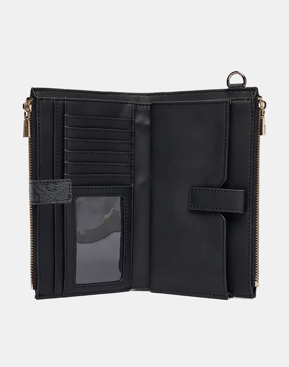 Women's wallet, with all over logo print, logo on the front, multiple internal pockets and zipper and button closure. It has a removable side strap. Dimensions: 18.5 x 11 x 3 cm. (Composition: 100% Polyurethane)