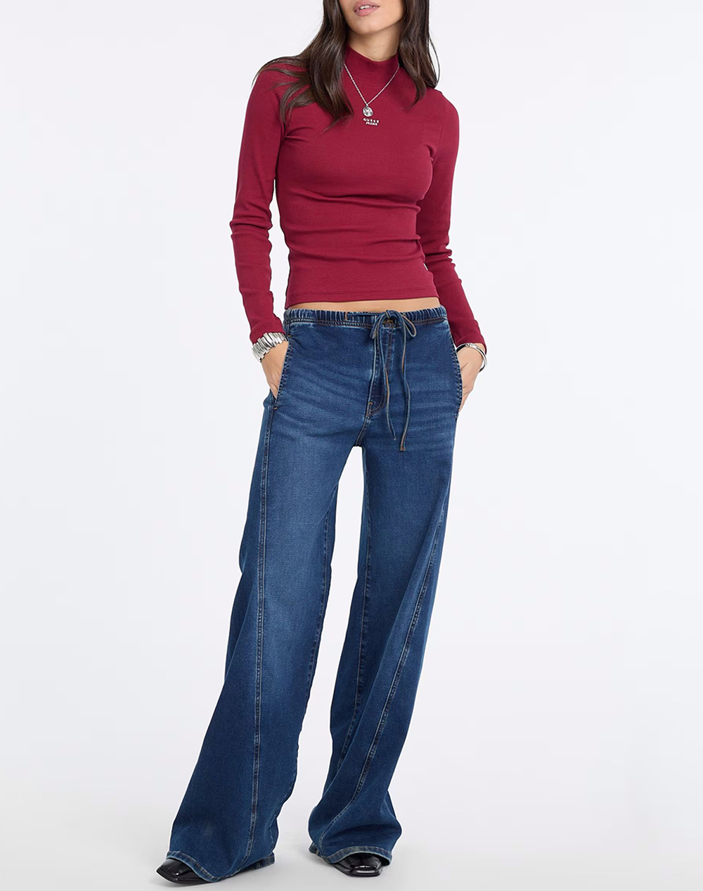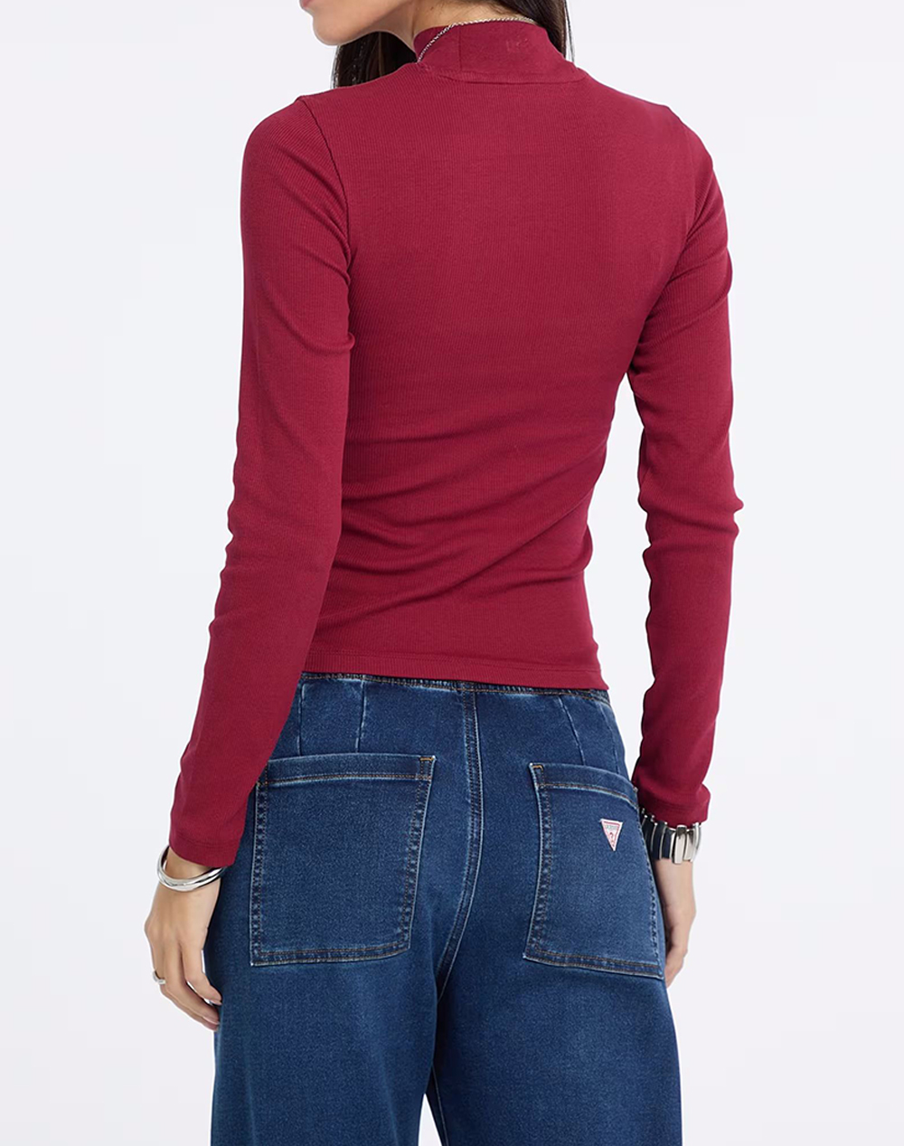 GUESS JEANS GJ LS MOCK NECK EMBRO SLIM TOP WOMEN