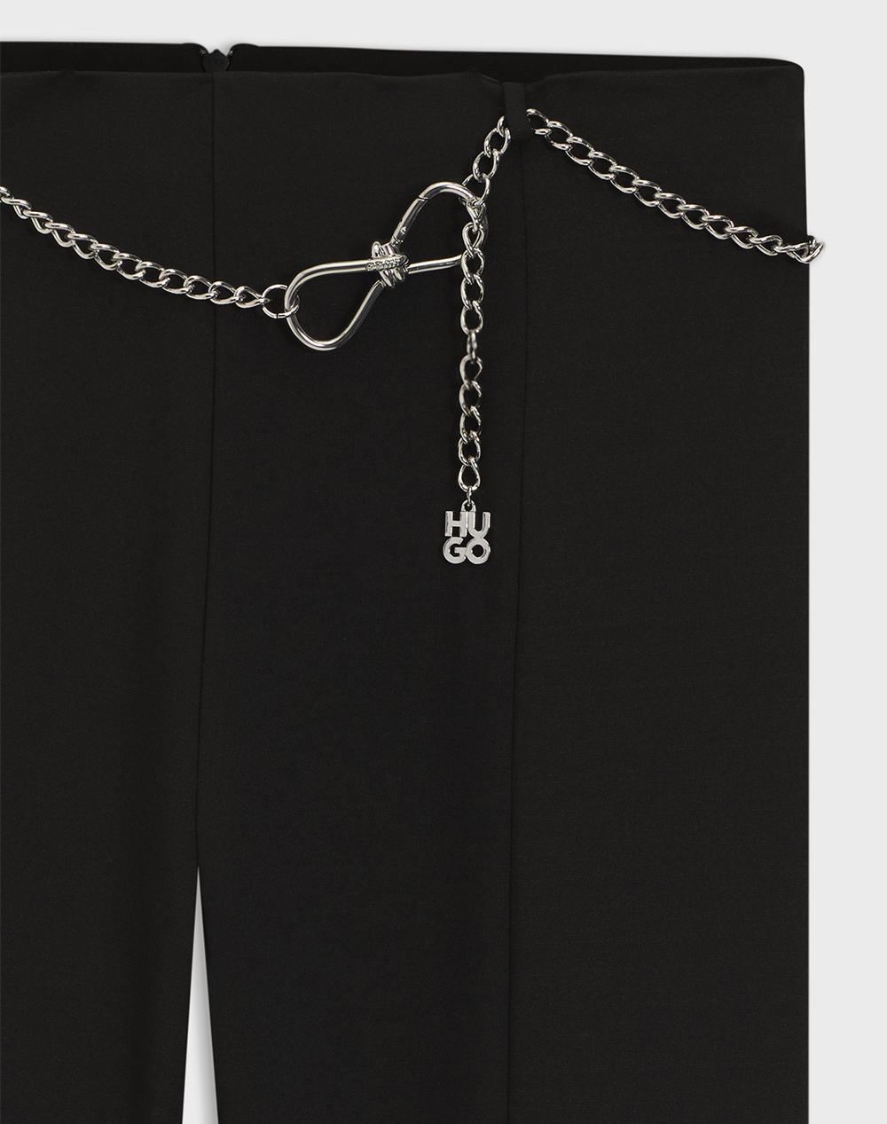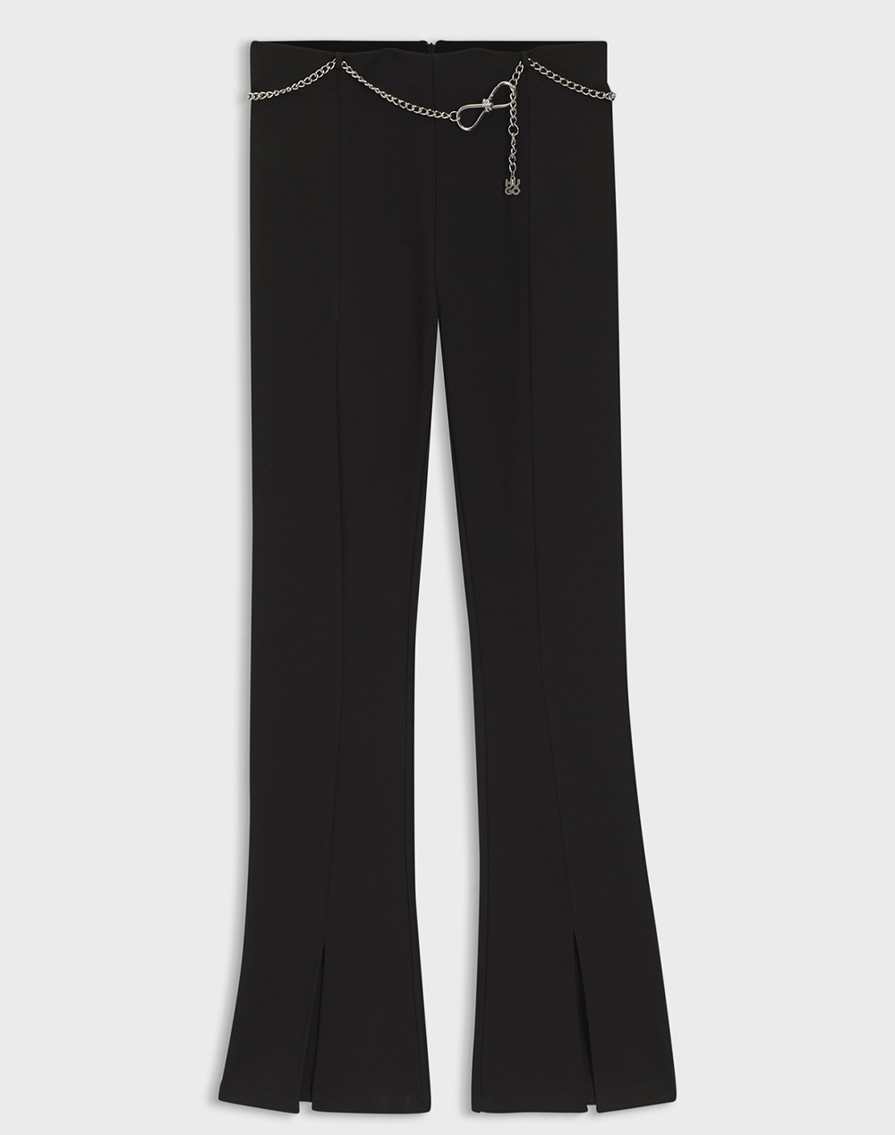 Women's trousers, in a regular fit, with an opening at the hem, a chain belt with logo detail and a zipper closure. (Composition: 60% Viscose, 33% Polyester, 7% Elastane)