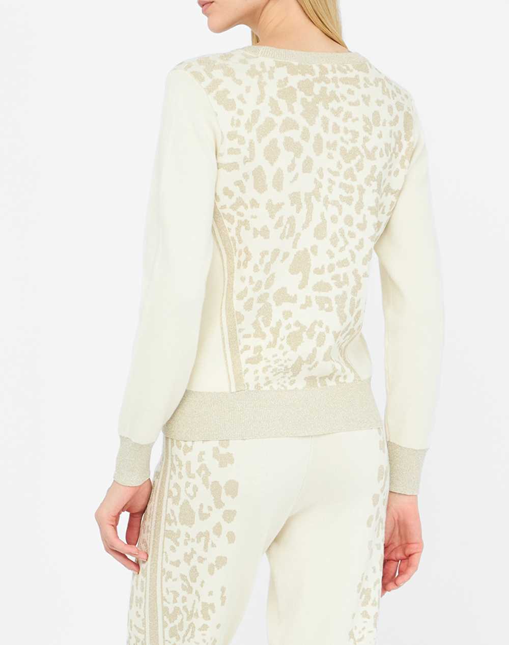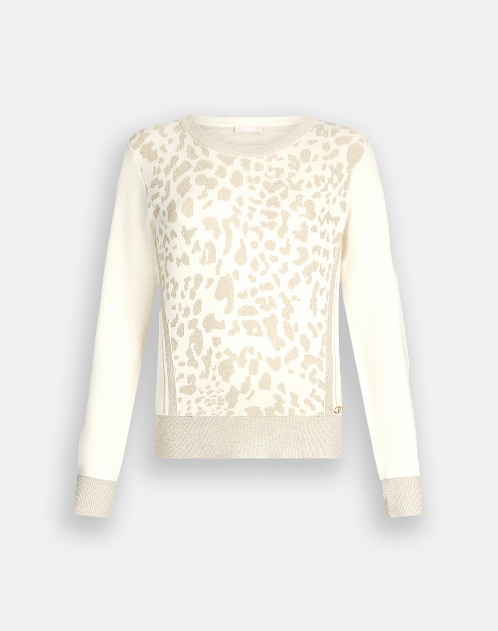 Women's sweater, regular fit, long sleeve, with round neckline and lurex thread in the weave. (Composition: 64% Viscose, 16% Nylon, 13% Polyester, 7% Metallic fiber)