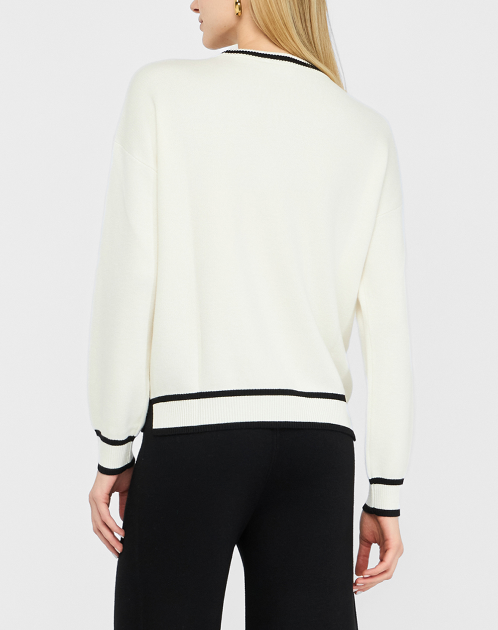 Women's knitted top, regular fit, long sleeves, with round neckline, contrasting details and decorative buttons. (Composition: 60% Viscose, 30% Nylon, 10% Silk)