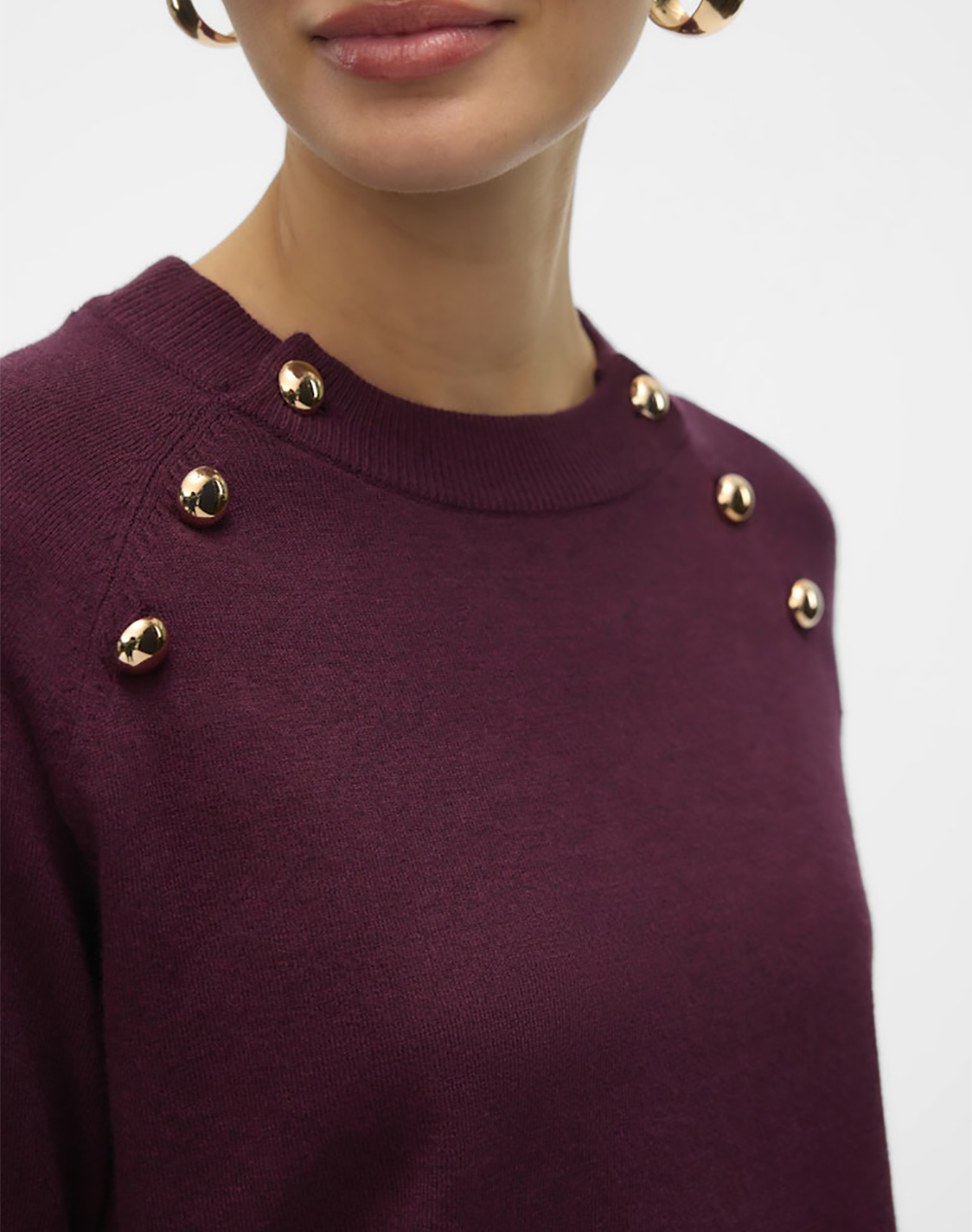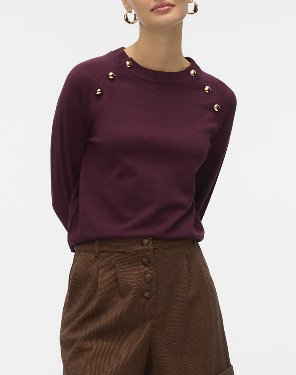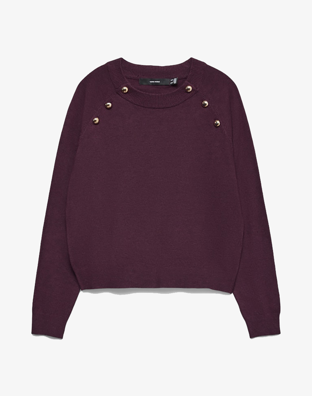 VERO MODA VMHAPPY LS O-NECK BUTTON PULLOVER BOO