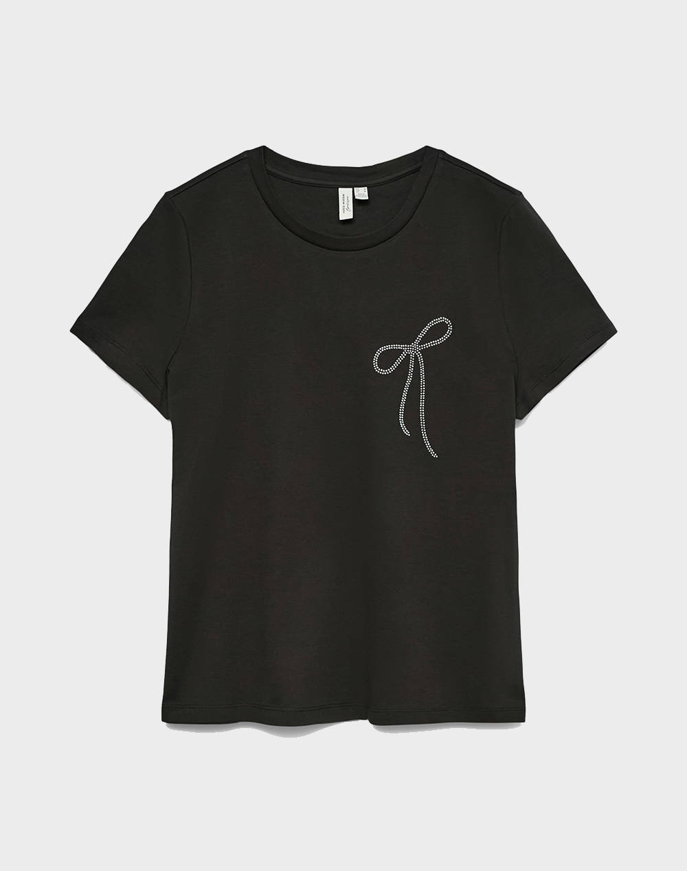 Women's t-shirt, regular fit, short sleeves, with round neckline and strass bow detail. (Composition: 100% Organic cotton)