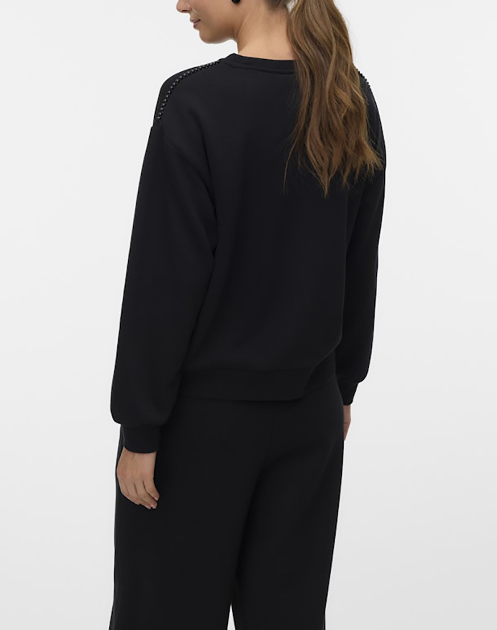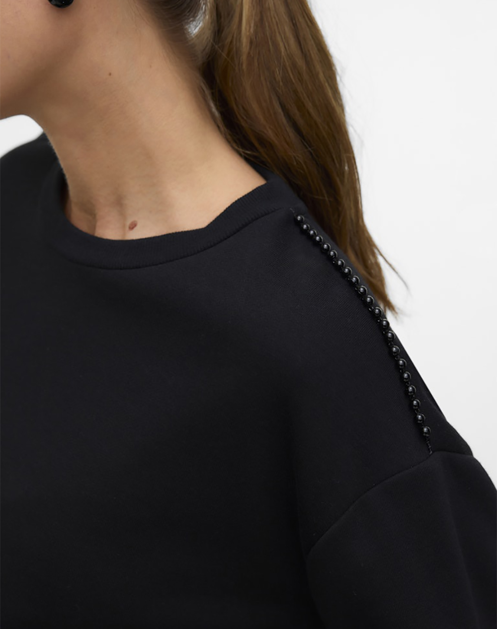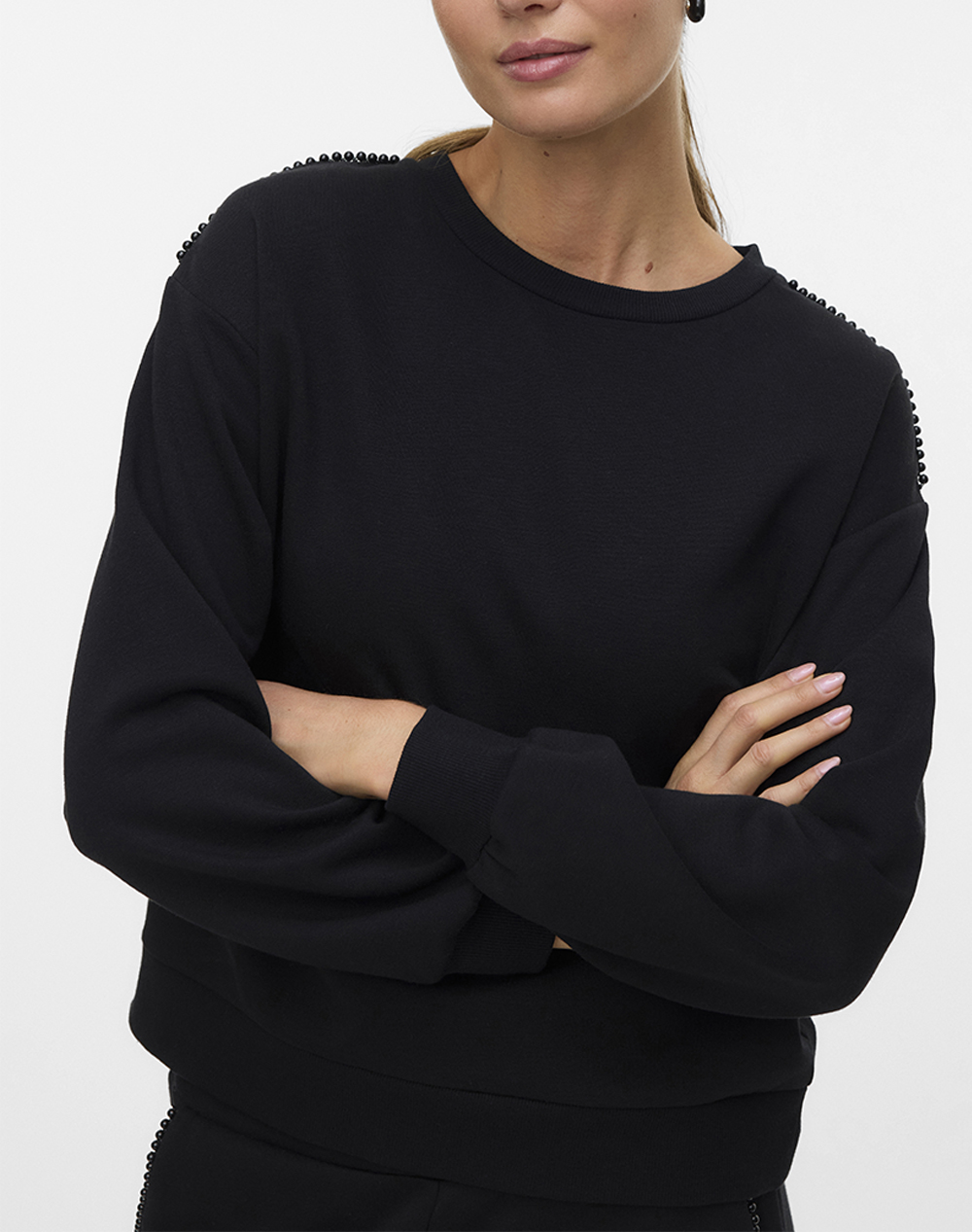 Women's sweatshirt, regular fit, long sleeve, with round neckline and pearl detail. (Composition: 65% Recycled Polyester, 35% Cotton)