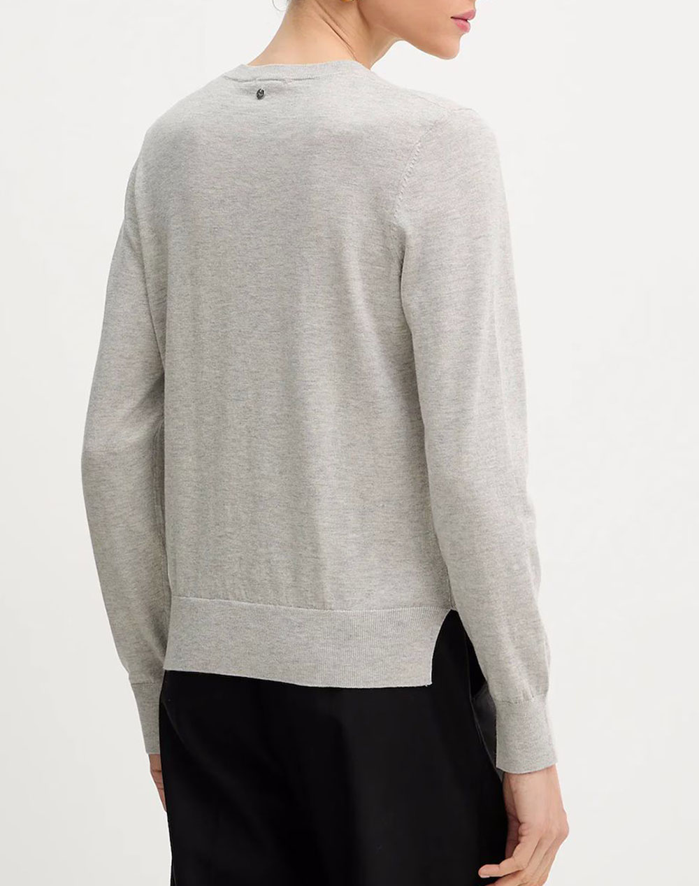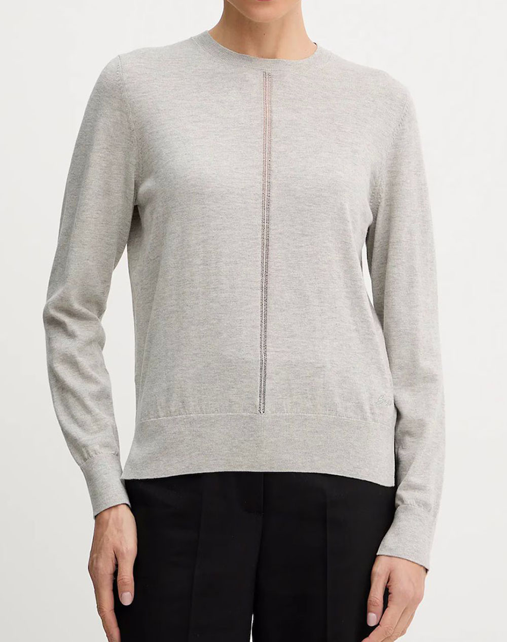 Women's sweater, regular fit, long sleeve, with round neckline and perforated detail on the front. (Composition: 50% Cotton, 50% Natural Wool)