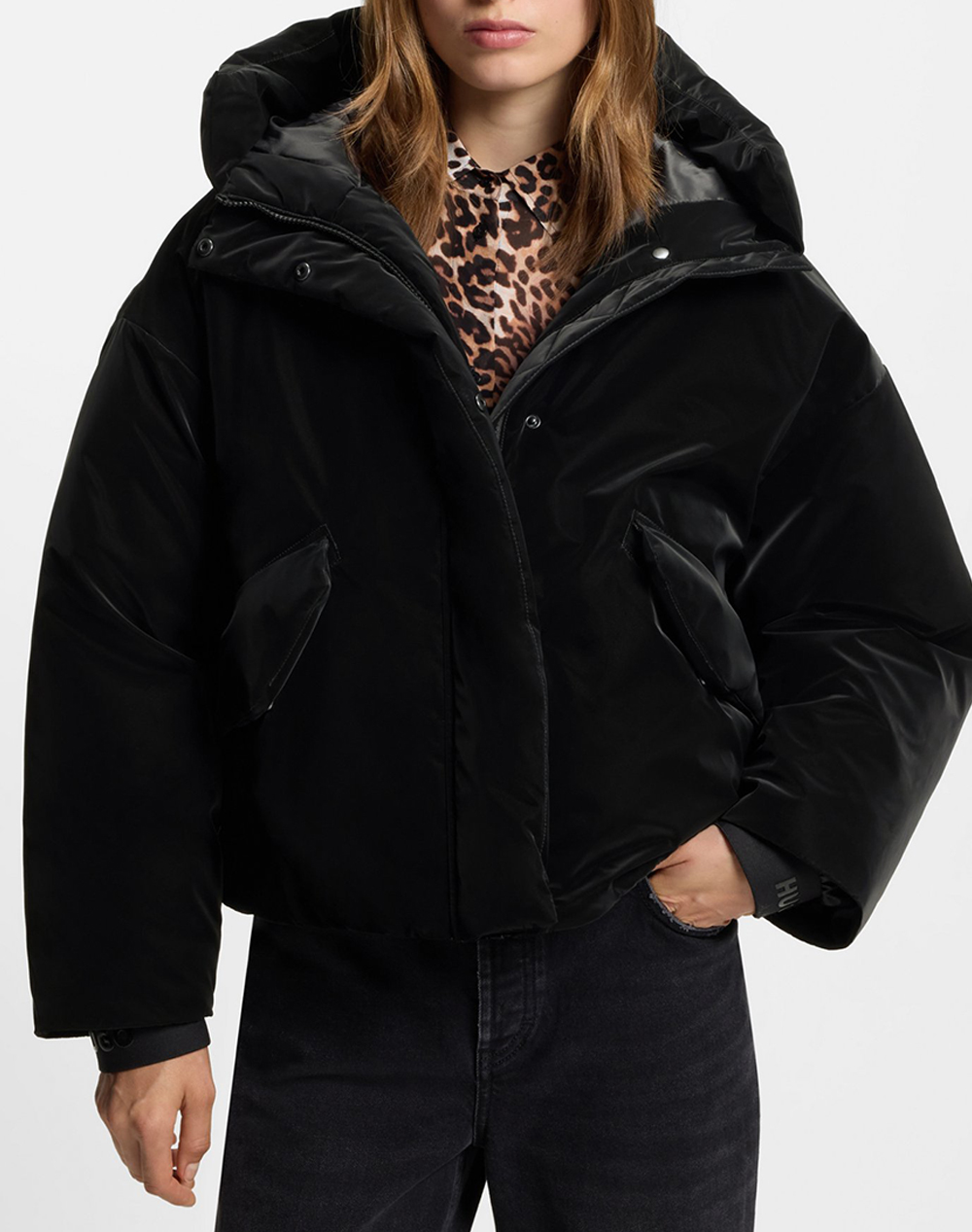 Women's jacket made of synthetic fabric.