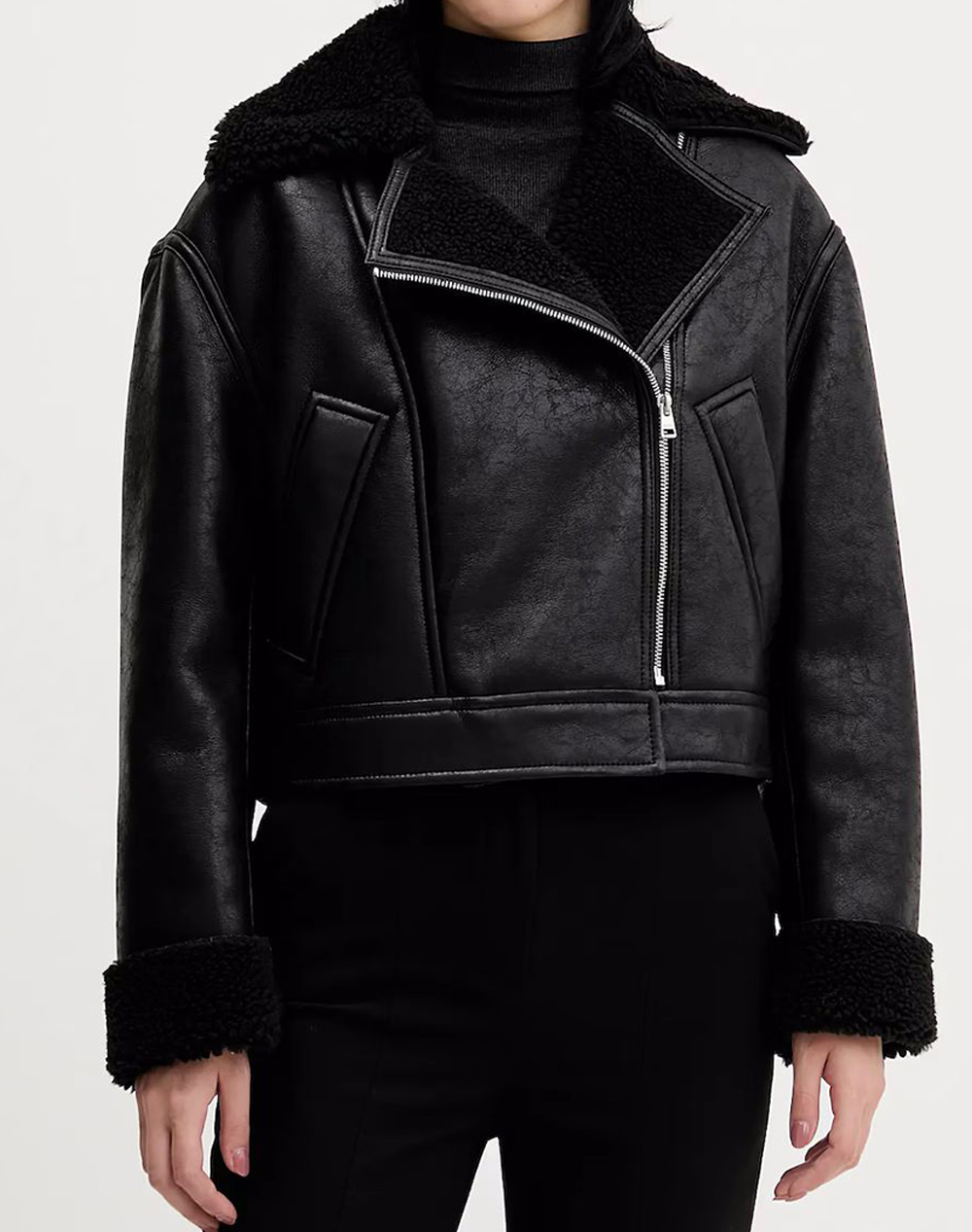 Women's jacket, in an oversized line, with lapel collar, fur lining and front zipper closure. (Composition: 100% Polyester, Lining: 100% Polyester)