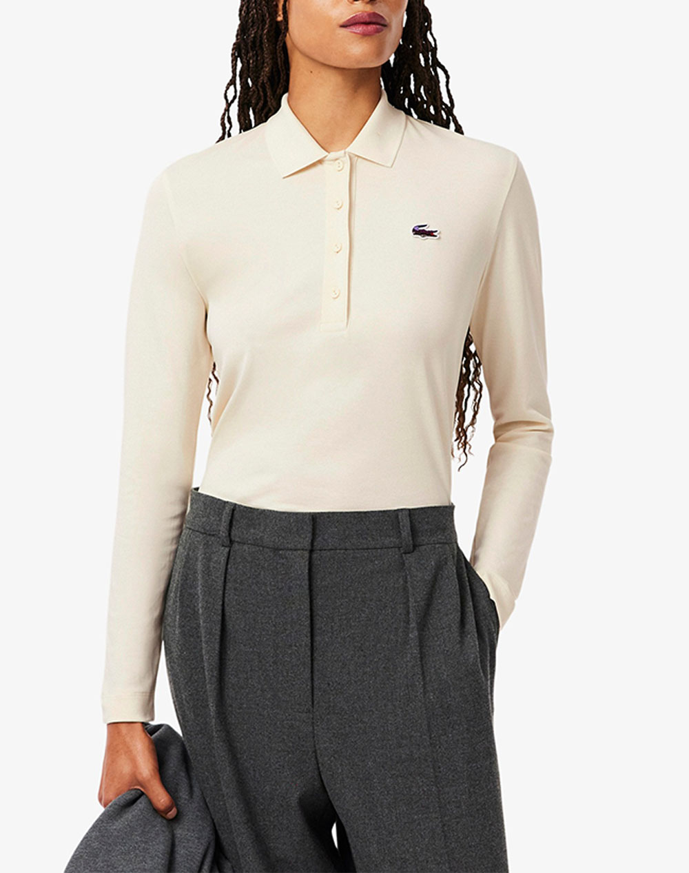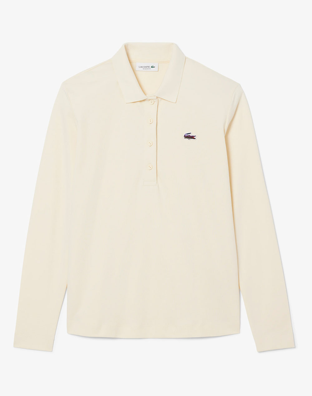 Γυναικεία μπλούζα polo, σε κανονική γραμμή, μακρυμάνικη, με γιακά polo και κεντημένο κροκόδειλο στο στήθος. (Σύνθεση: 100% Βαμβάκι)