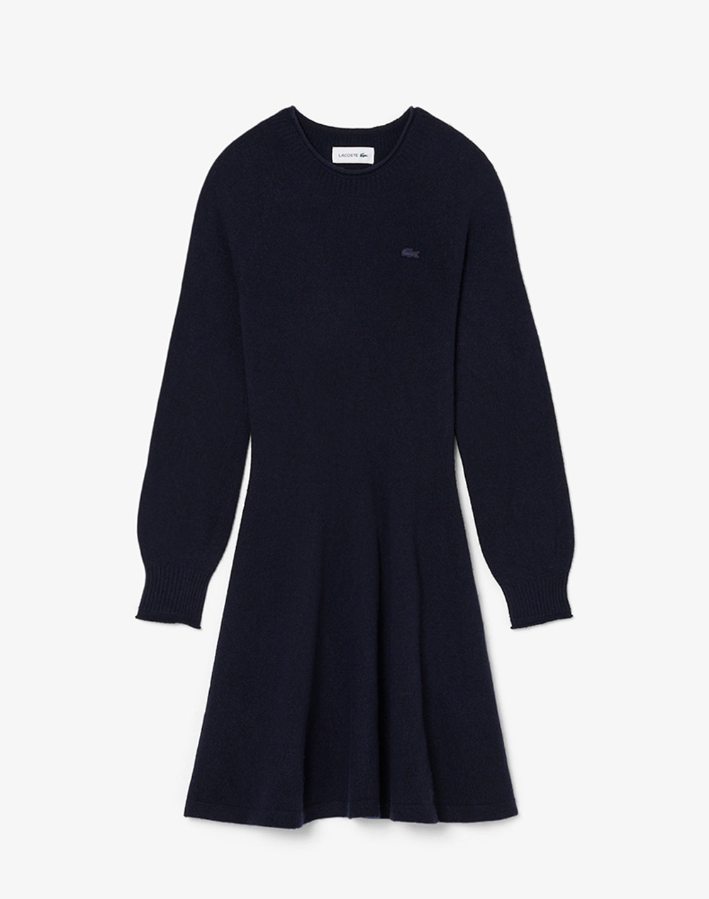Women's knitted dress, in fit & flare style, long sleeves, with round neckline and seamless design. (Composition: 100% Wool)