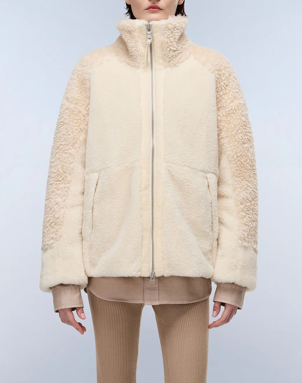 Women's fleece jacket, in an oversized style, with a stand-up collar, side pockets and a two-way zipper closure. (Composition: 52% Acrylic, 48% Polyester)