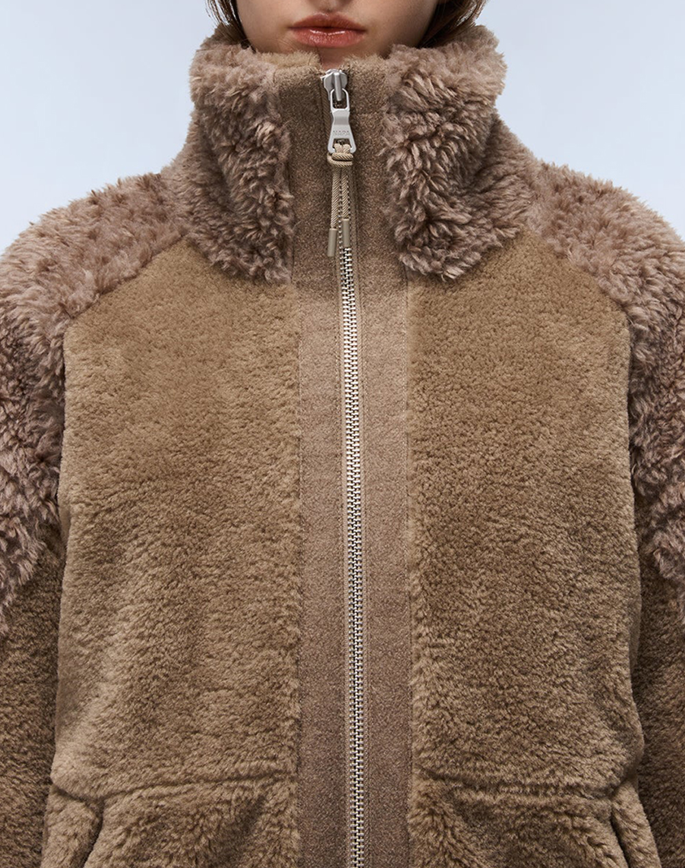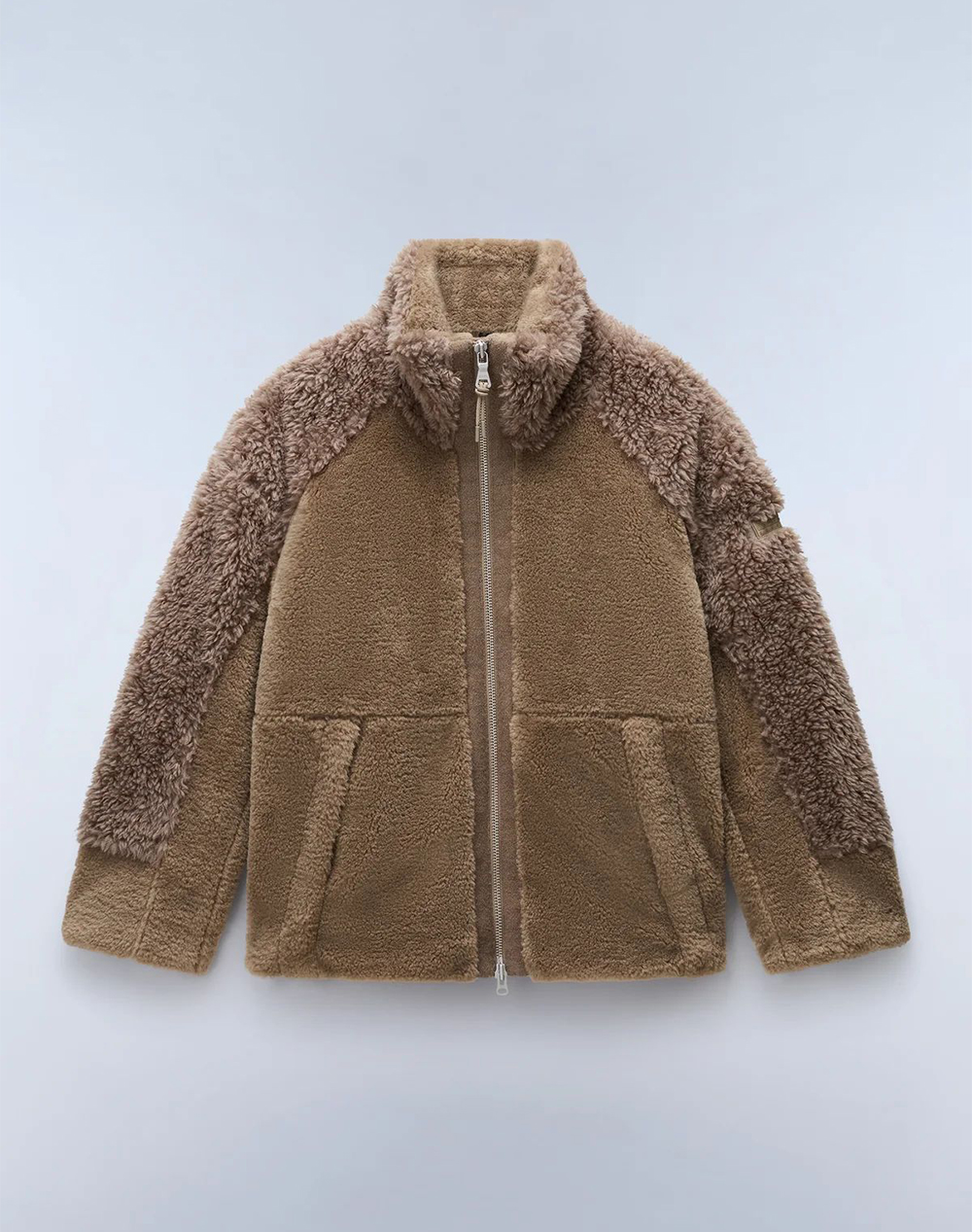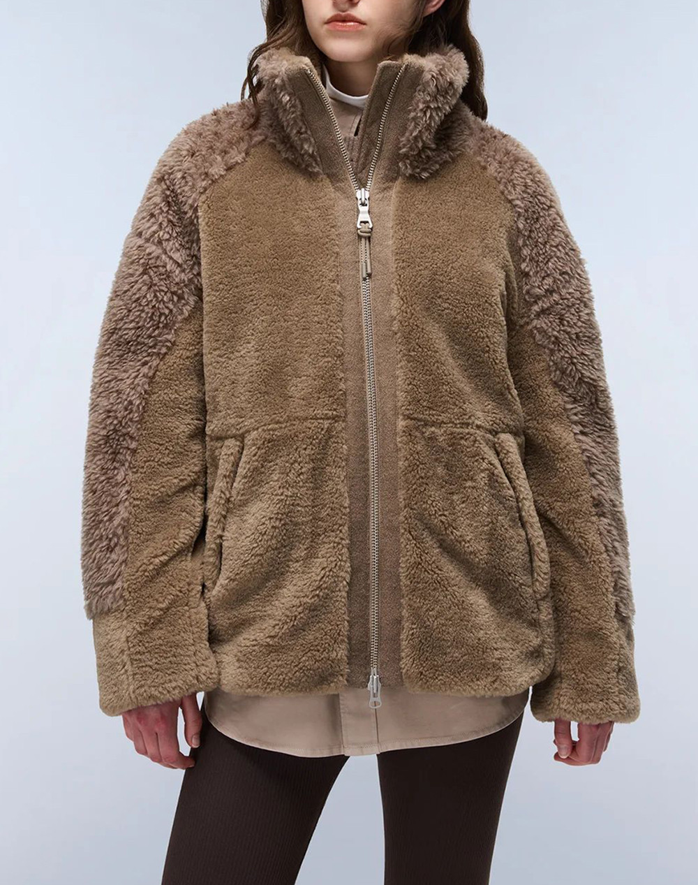 Women's fleece jacket, in an oversized style, with a stand-up collar, side pockets and a two-way zipper closure. (Composition: 52% Acrylic, 48% Polyester)