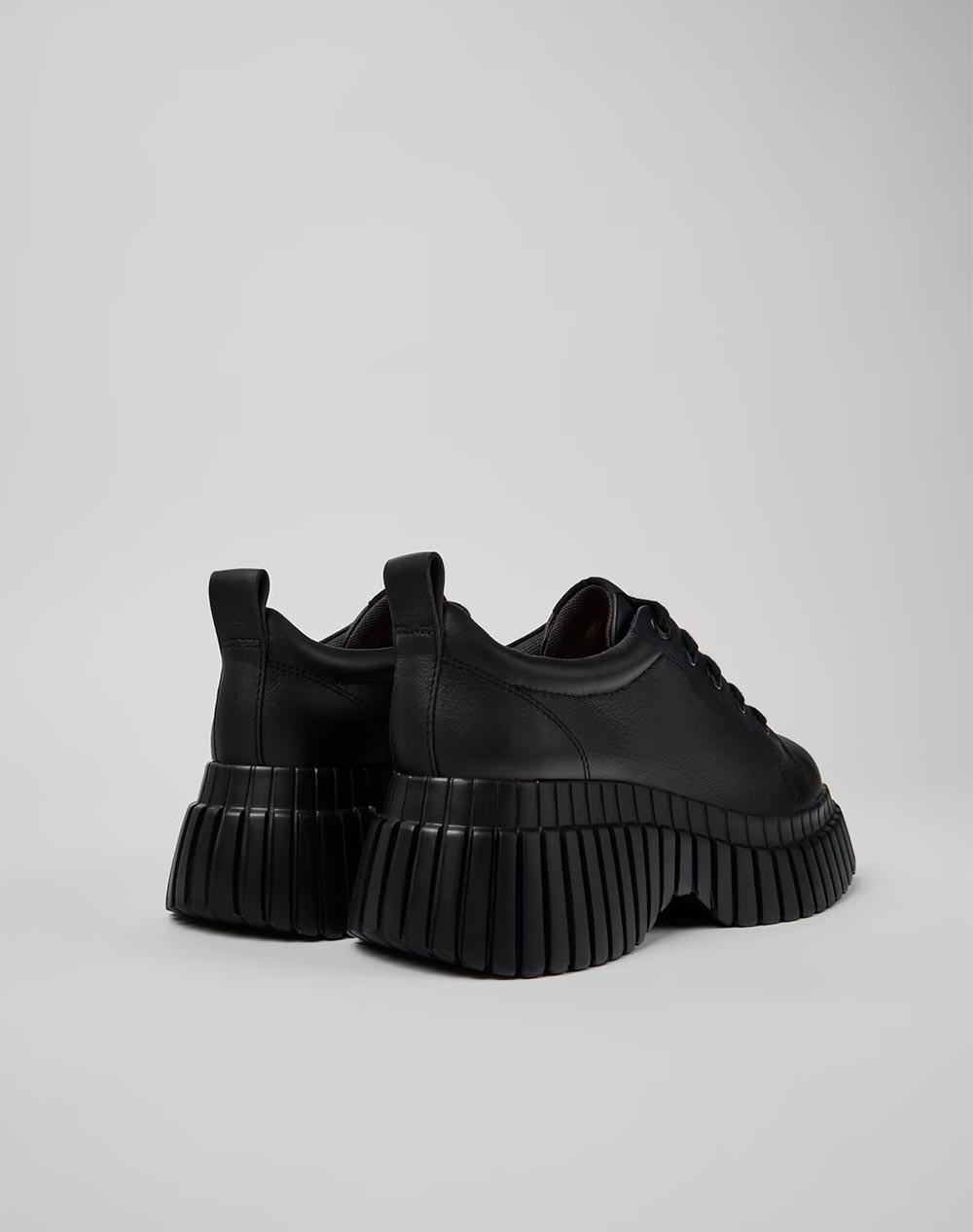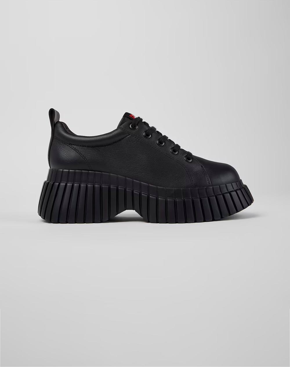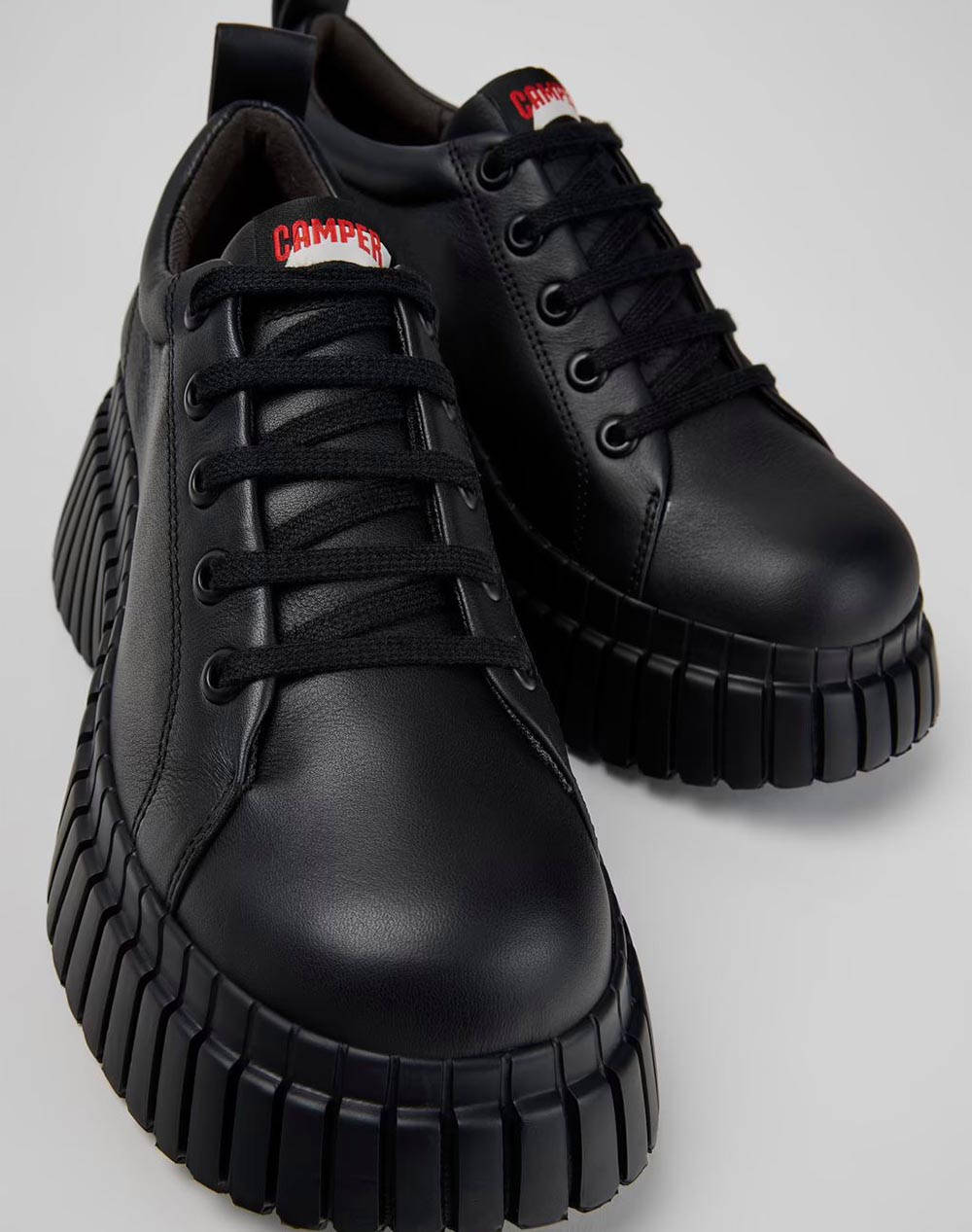 Women's shoes with a slightly reinforced toe, rubber outsole and lace fastening. (Composition: Leather)