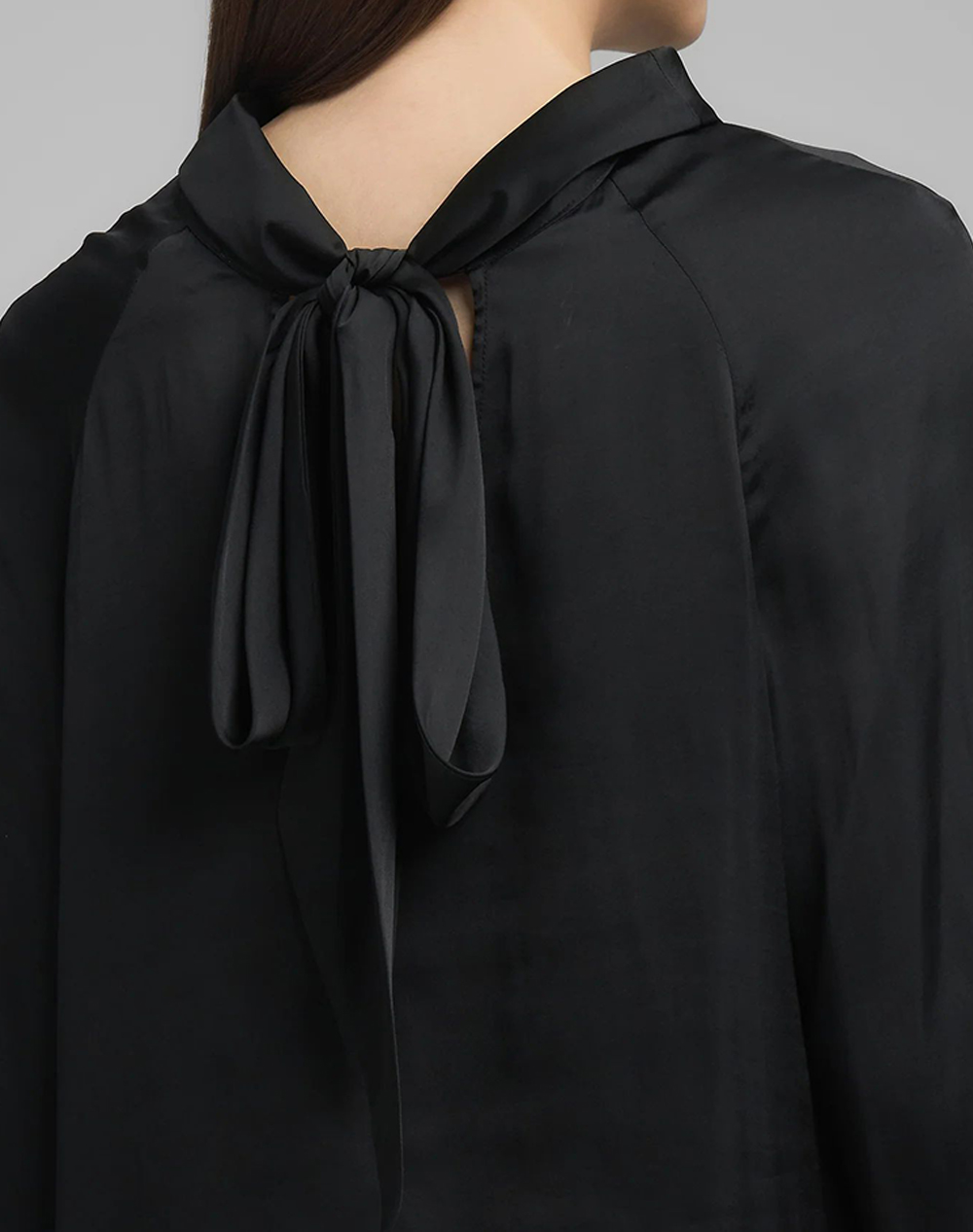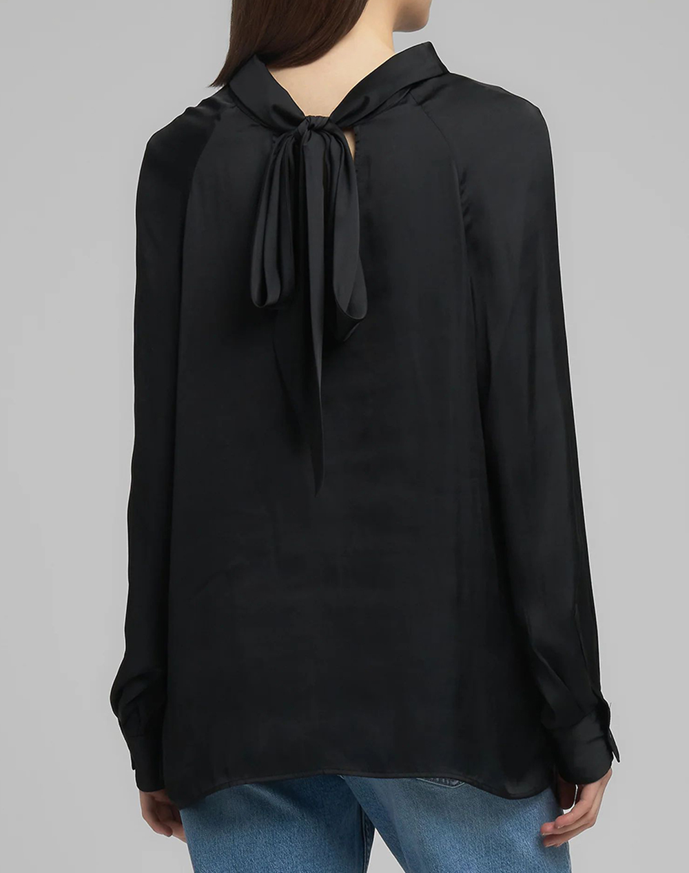 Women's blouse, in a comfortable fit, long sleeves with a round neckline and ribbon at the back. (Composition: 100% Polyester)