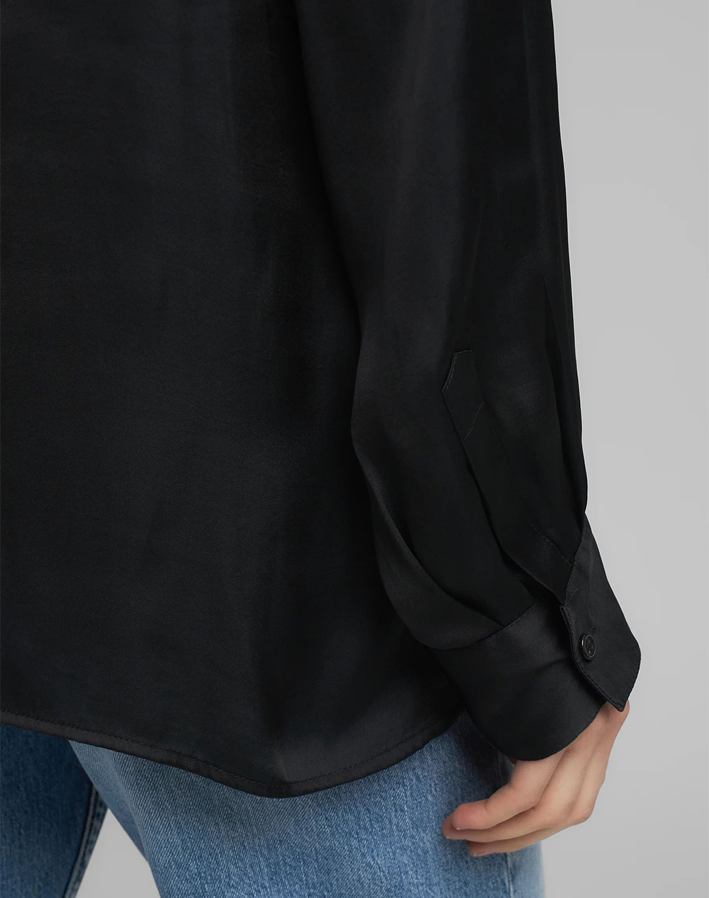 Women's blouse made of synthetic fabric.