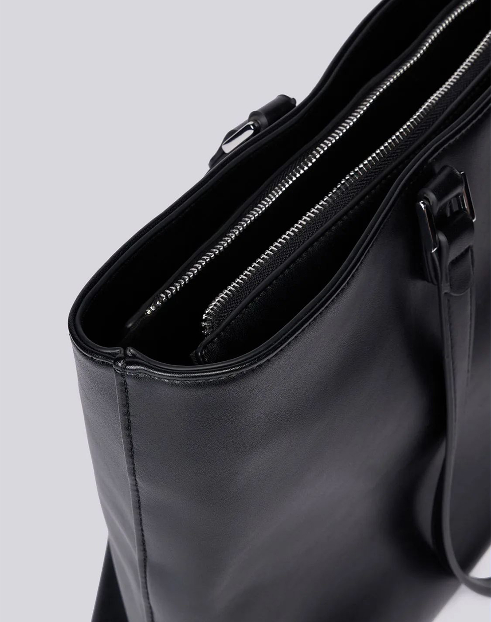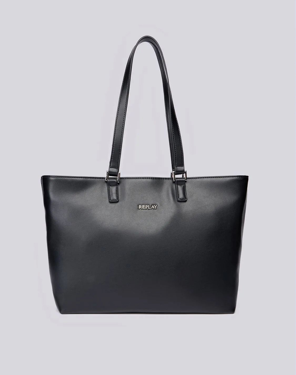 Women's bag, with double handle on the top, metal logo on the front and zipper closure. Dimensions: 34 x 27 x 13.5cm. (Composition: 100% Polyurethane & 100% Polyester)