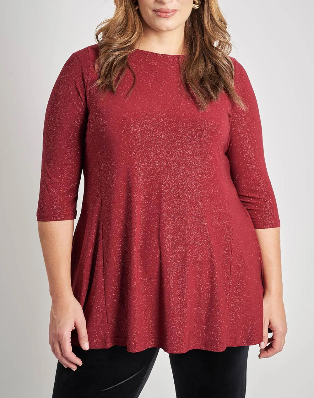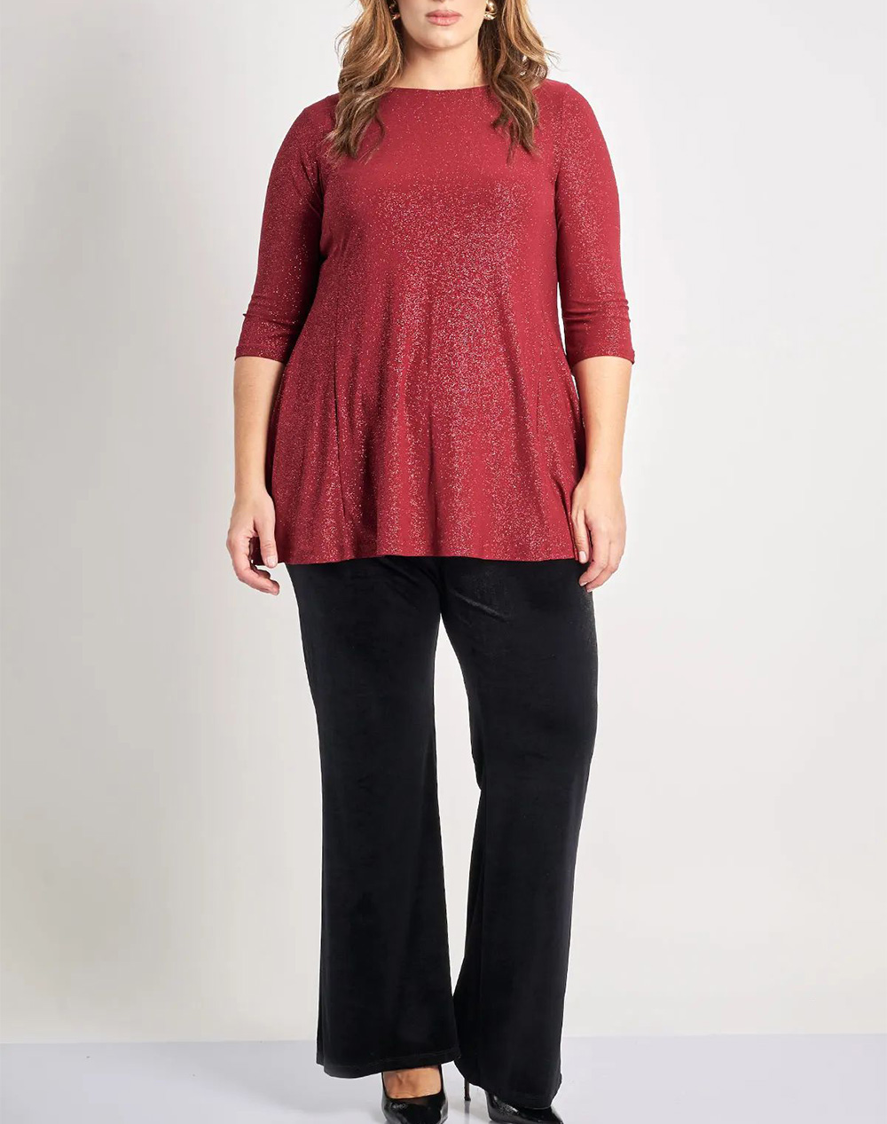 Γυναικεία τουνίκ, σε άλφα γραμμή, με μανίκι 3/4, στρογγυλή λαιμόκοψη και διακόσμηση lurex. (Σύνθεση: 95% Πολυεστέρας, 5% Ελαστάνη)