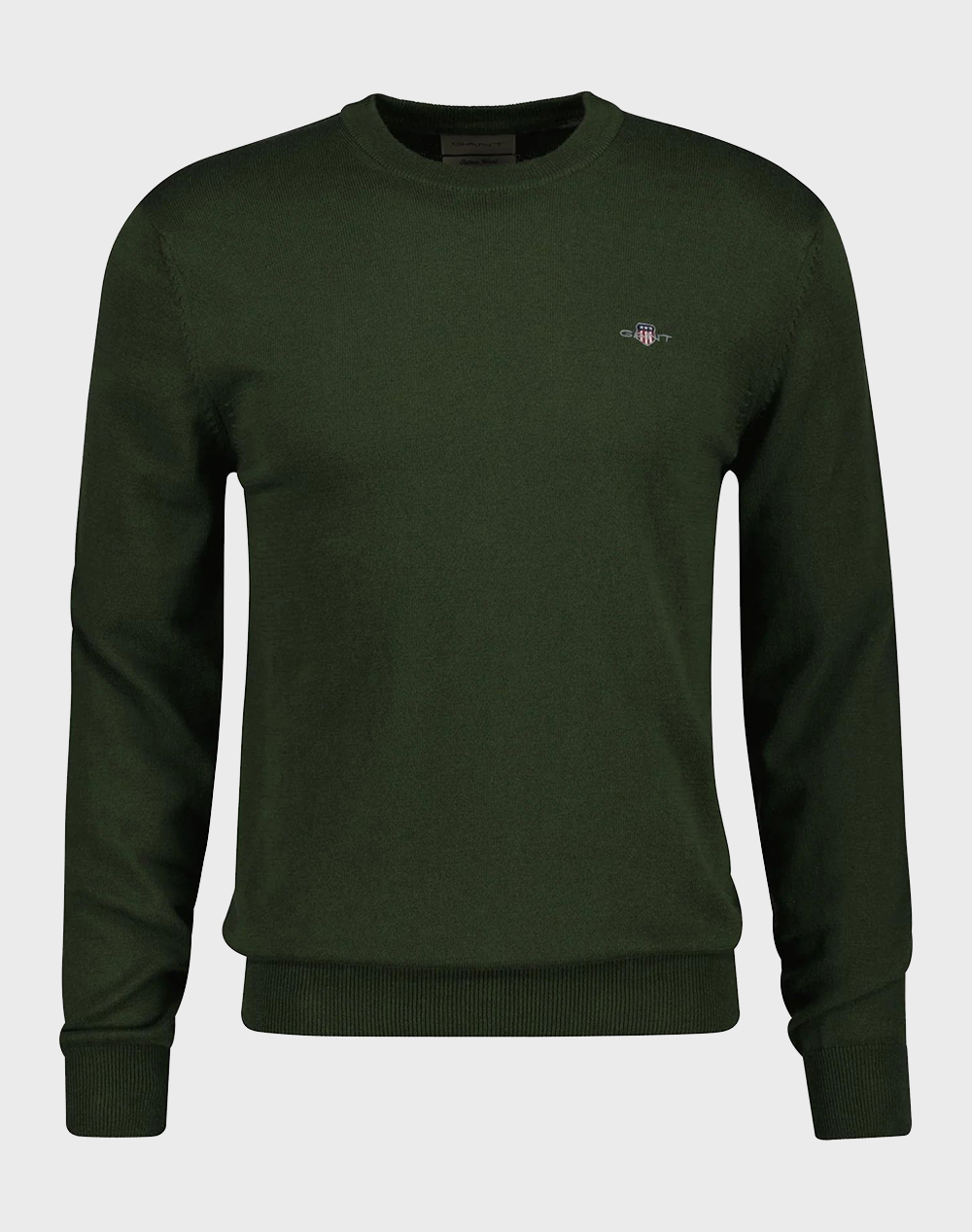 Men's sweater, regular fit, long sleeve, with round neckline and embroidered logo on the chest. (Composition: 70% Cotton, 30% Natural Wool)