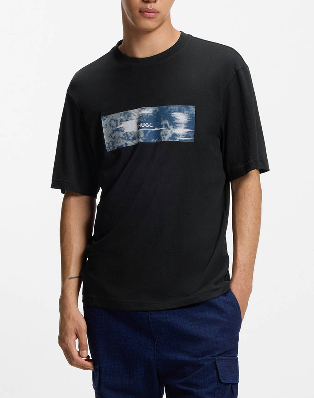 Men's t-shirt, regular fit, short sleeves, round neckline and front print. (Composition: 100% Cotton)