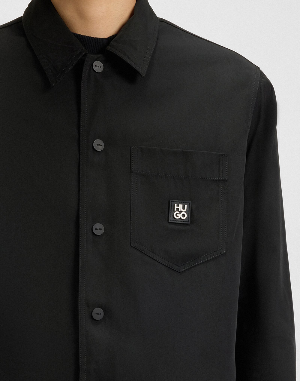 Men's shirt, made of waterproof fabric, in an oversized line, long sleeves, with a camp collar, a chest pocket with logo and a zipper closure along the length. (Composition: 100% Polyester)