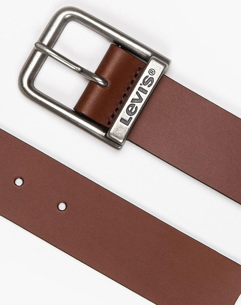 Ανδρική ζώνη, μονόχρωμη και με κλείσιμο με μεταλλική αγκράφα με λεπτομέρεια λογότυπο. (Σύνθεση: Δέρμα)