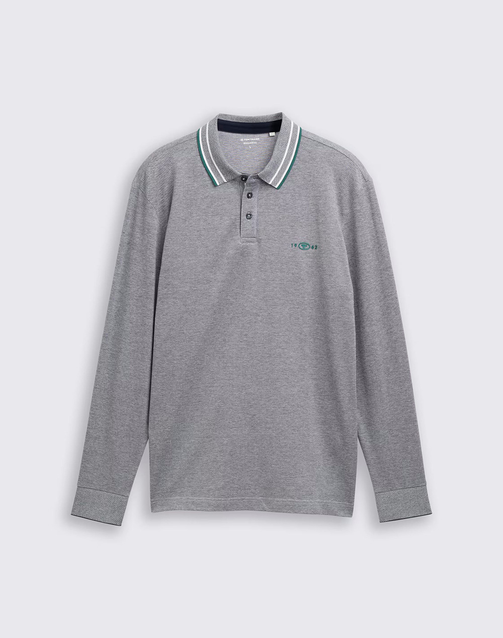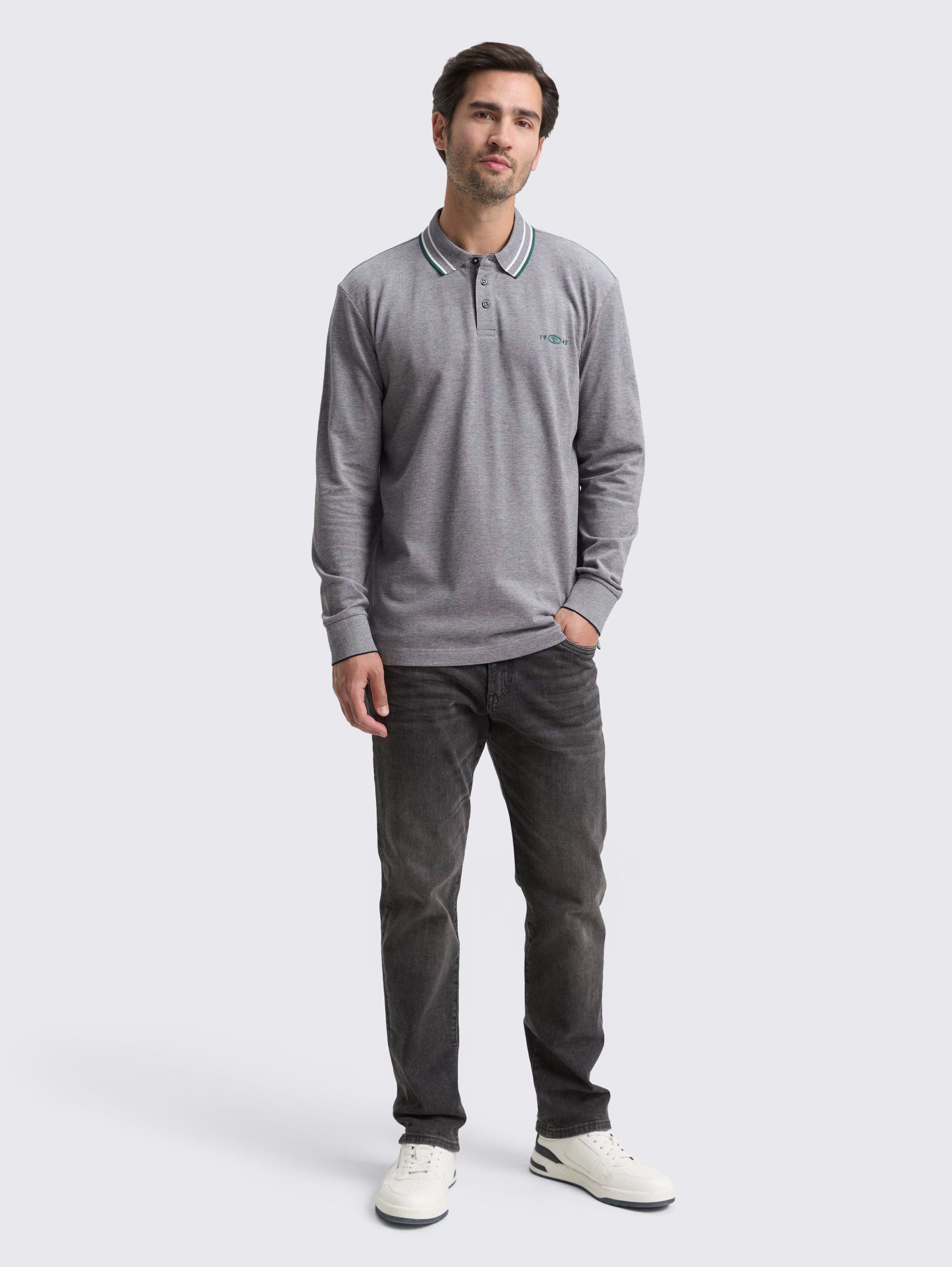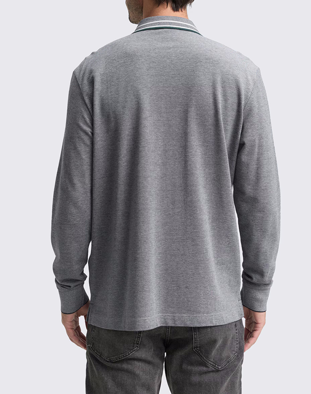 Men's polo shirt, regular fit, long sleeves, with a collar with contrasting stripes and buttons at the neckline. (Composition: 98% Cotton, 2% Elastane)