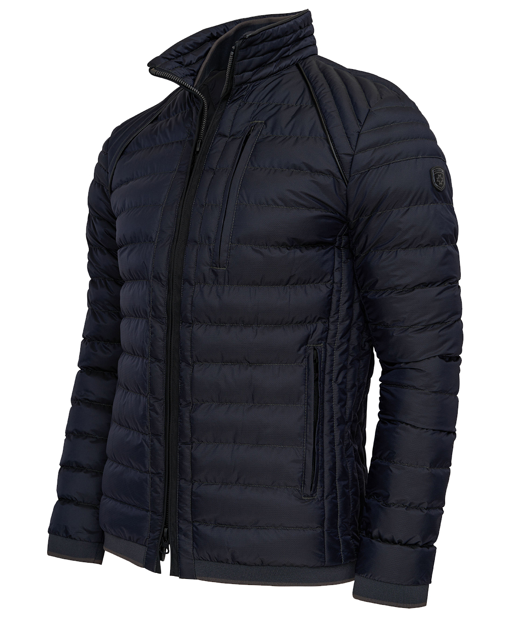 Men's jacket, solid color, waterproof, regular fit, with high neckline, zipper pockets and logo on the arm. (Composition: 100% Polyester)