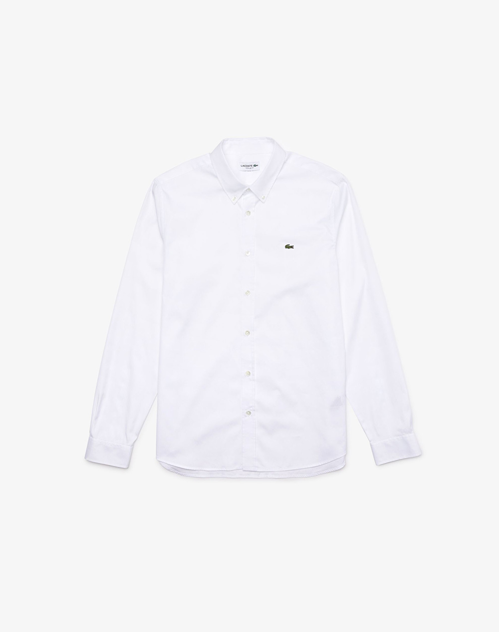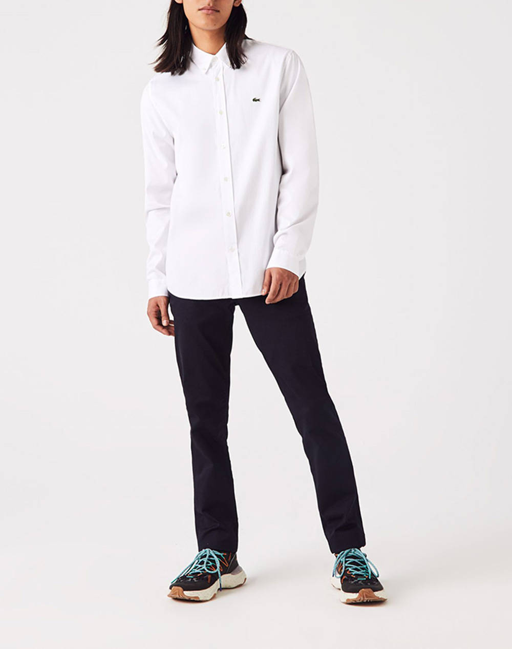 Men's shirt, regular, straight fit, long sleeve, solid color, with classic collar, logo and button closure. (Composition: 100% Cotton)