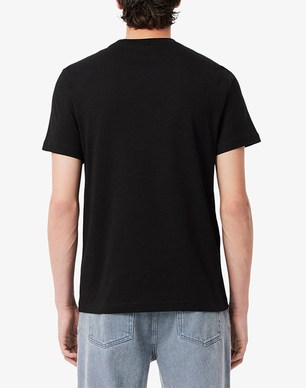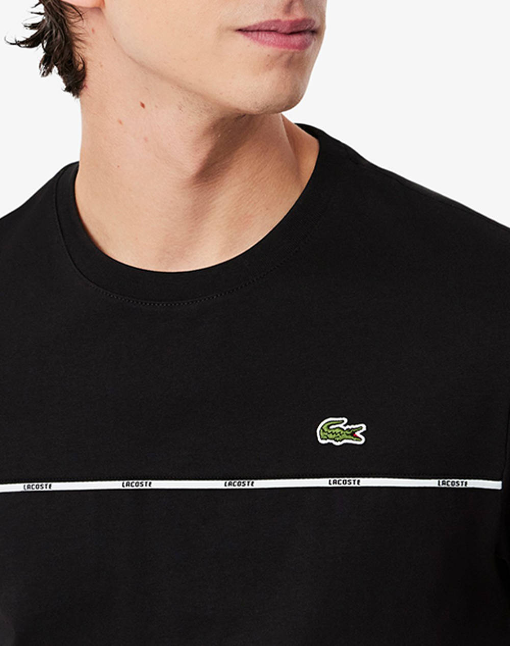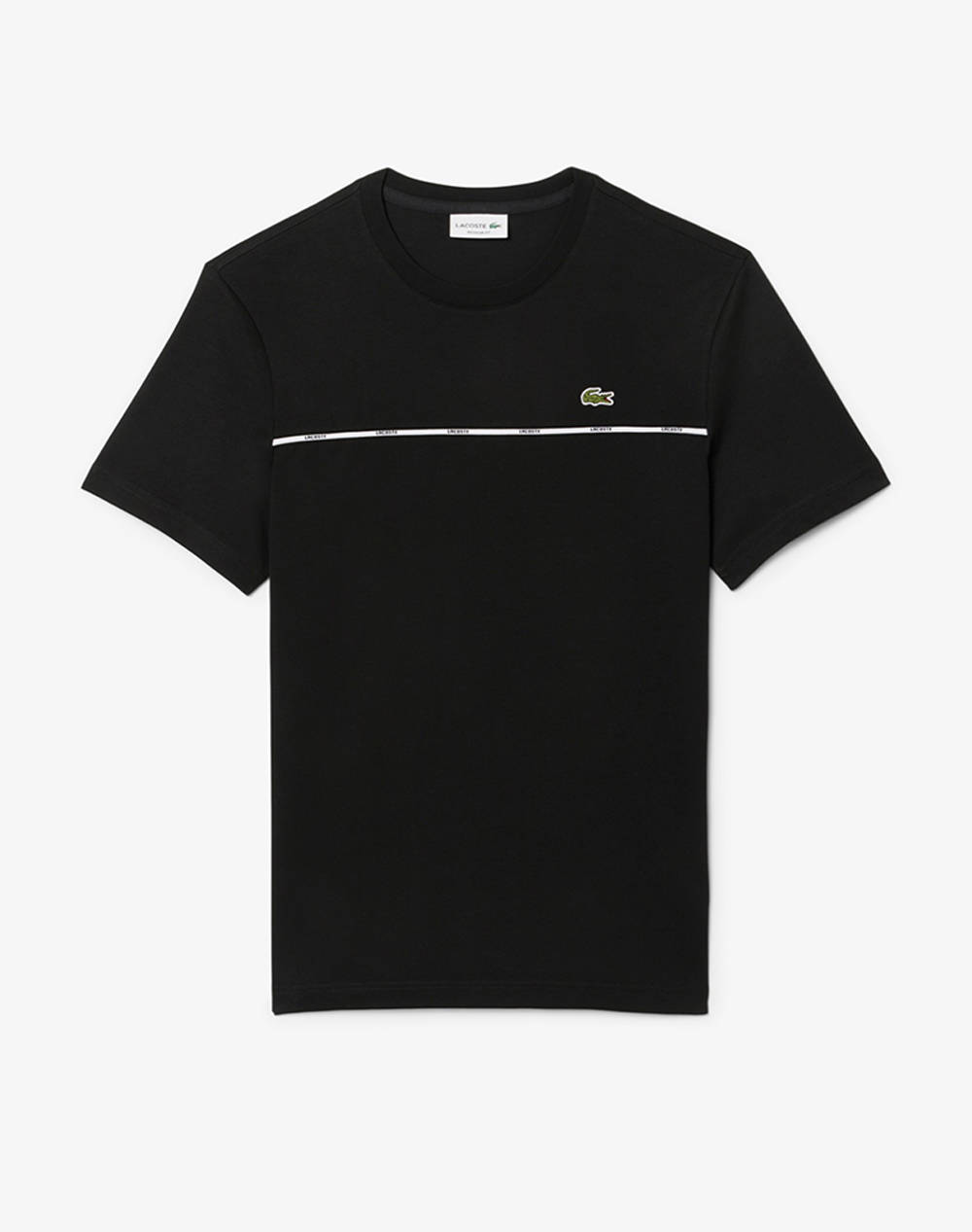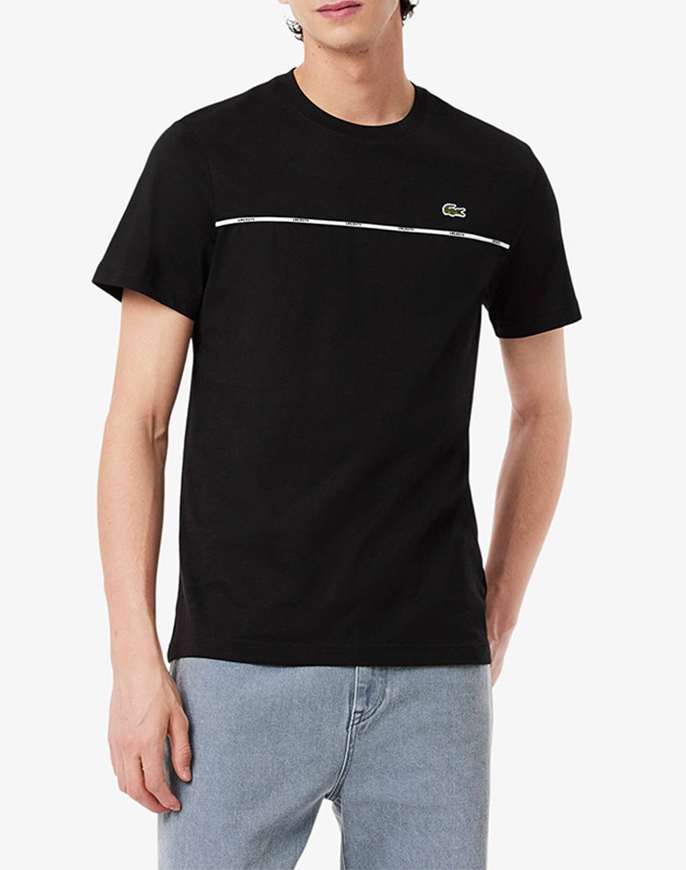 Men's t-shirt, regular fit, short sleeves, with round neckline and contrasting stripe with a repeating logo on the front. (Composition: 100% Cotton)