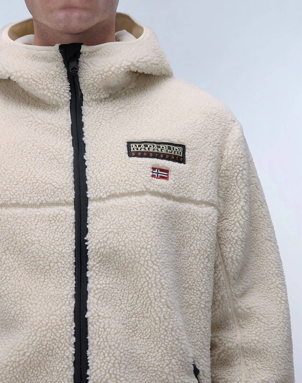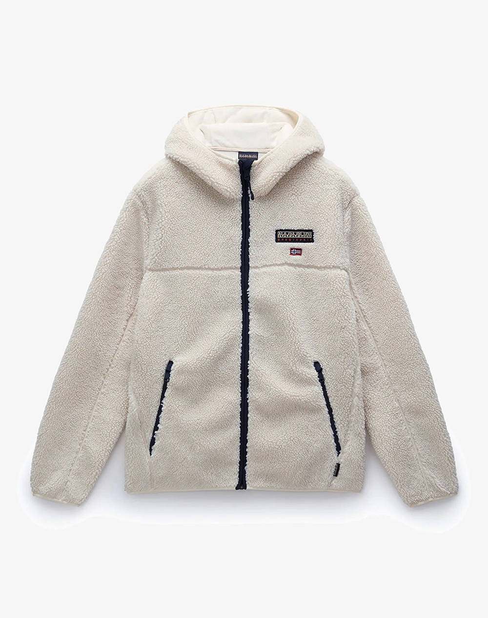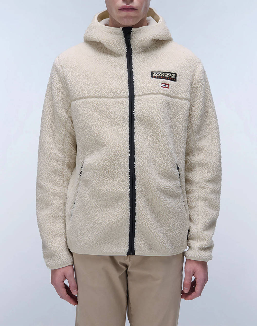 Men's fleece jacket, regular fit, with hood, side pockets and front zipper closure. (Composition: 100% Polyester)