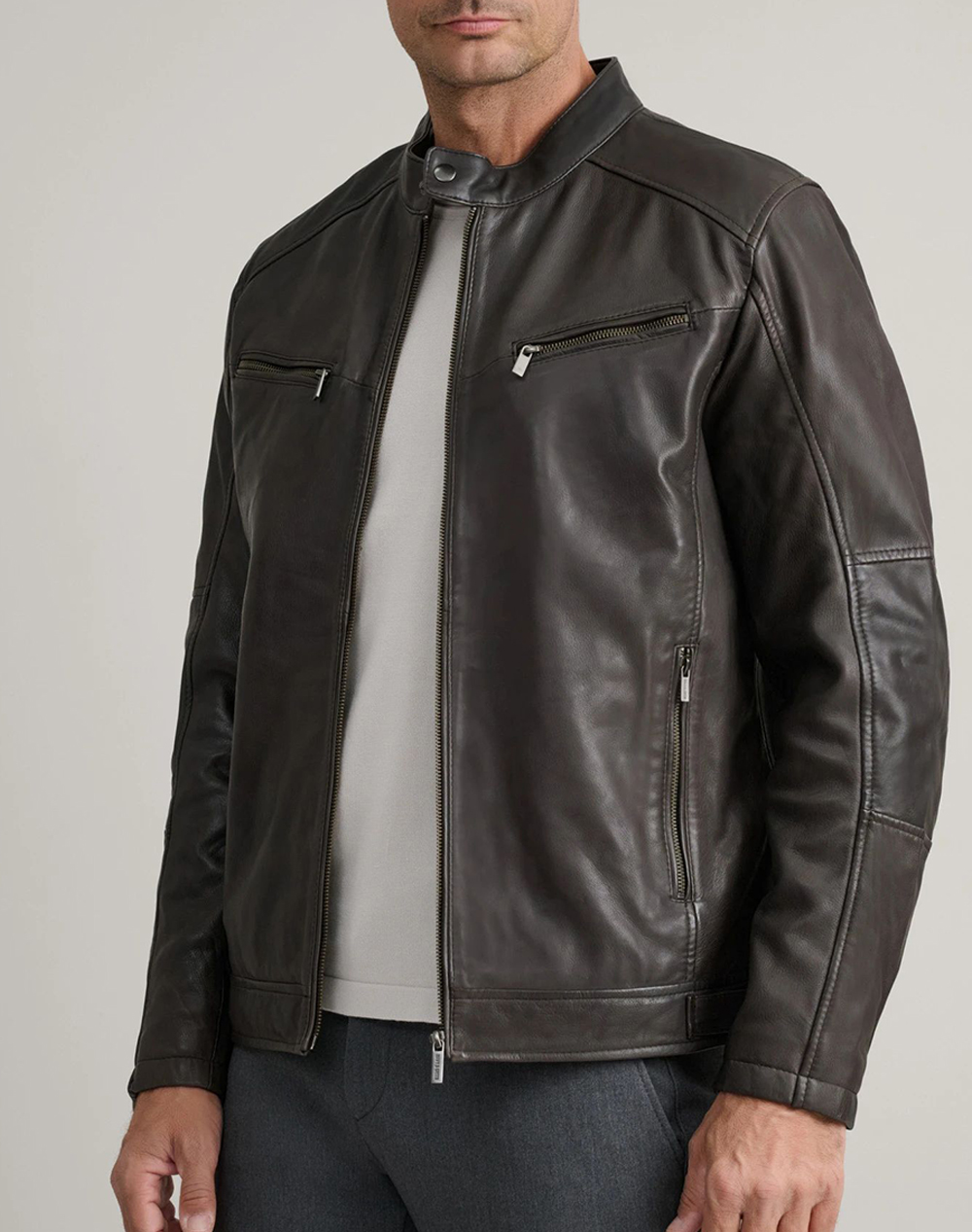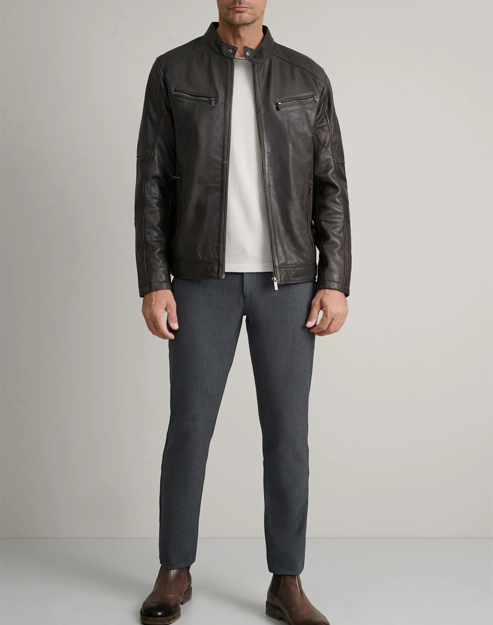 Men's biker jacket, regular fit, with quilted inner lining and zipper closure. (Composition: 100% Leather)