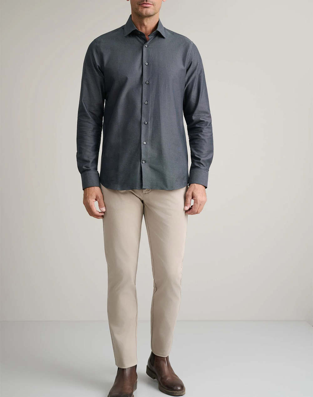 Men's shirt, regular fit, long sleeve, with Semi Rex collar and front button closure. (Composition: 100% Cotton)