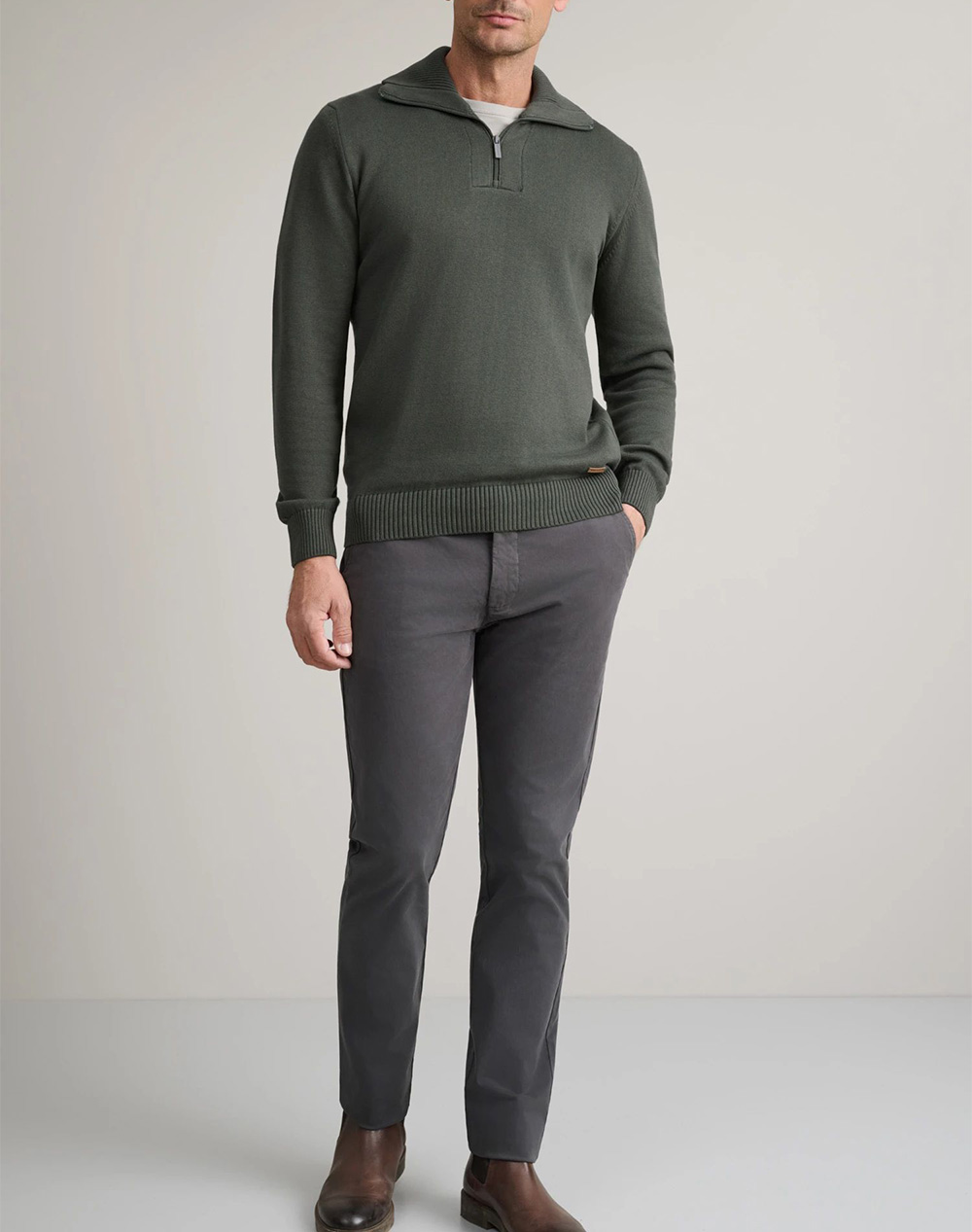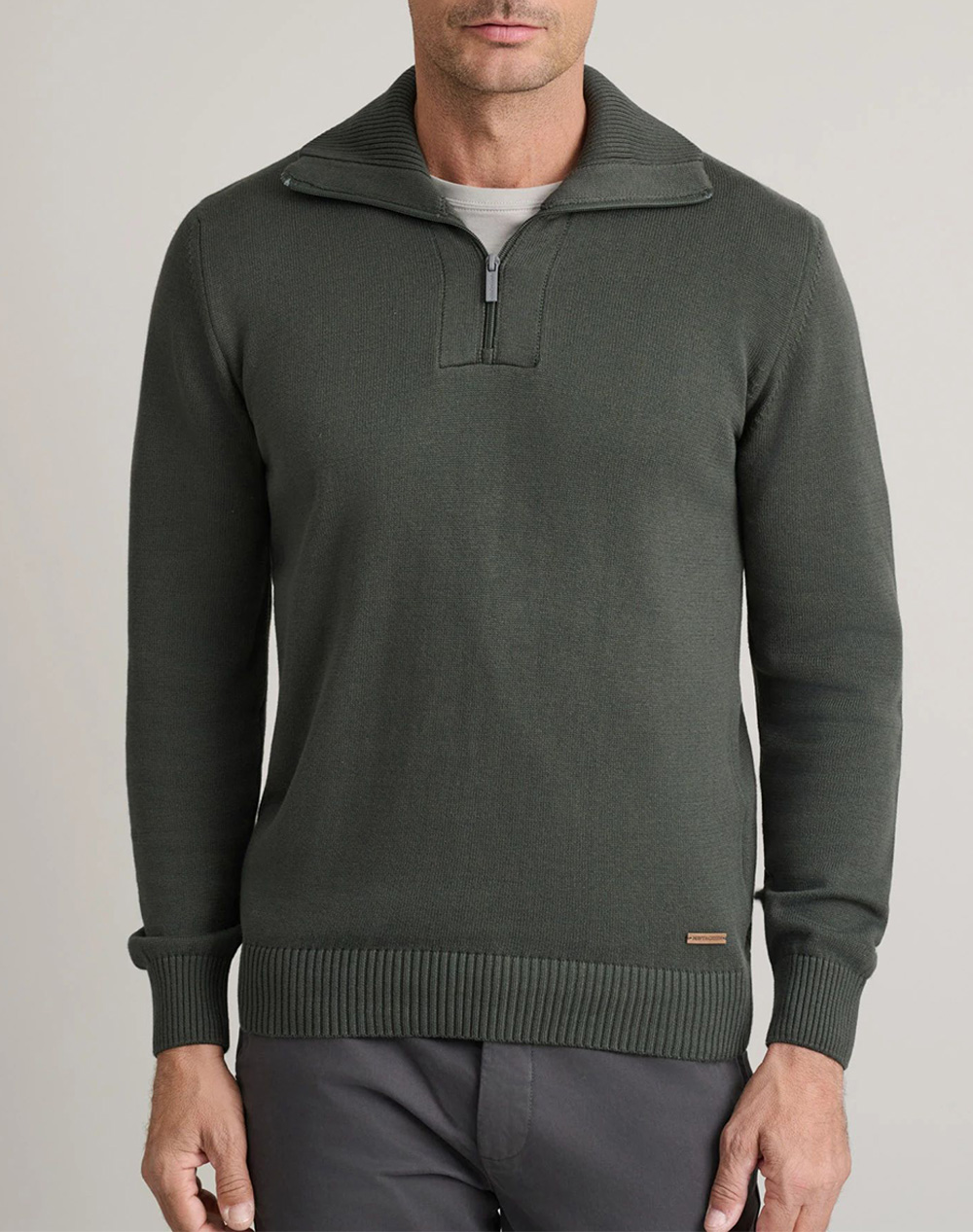 Men's knitted top, regular fit, long sleeves, with halfzip and polo collar. (Composition: 100% Cotton)