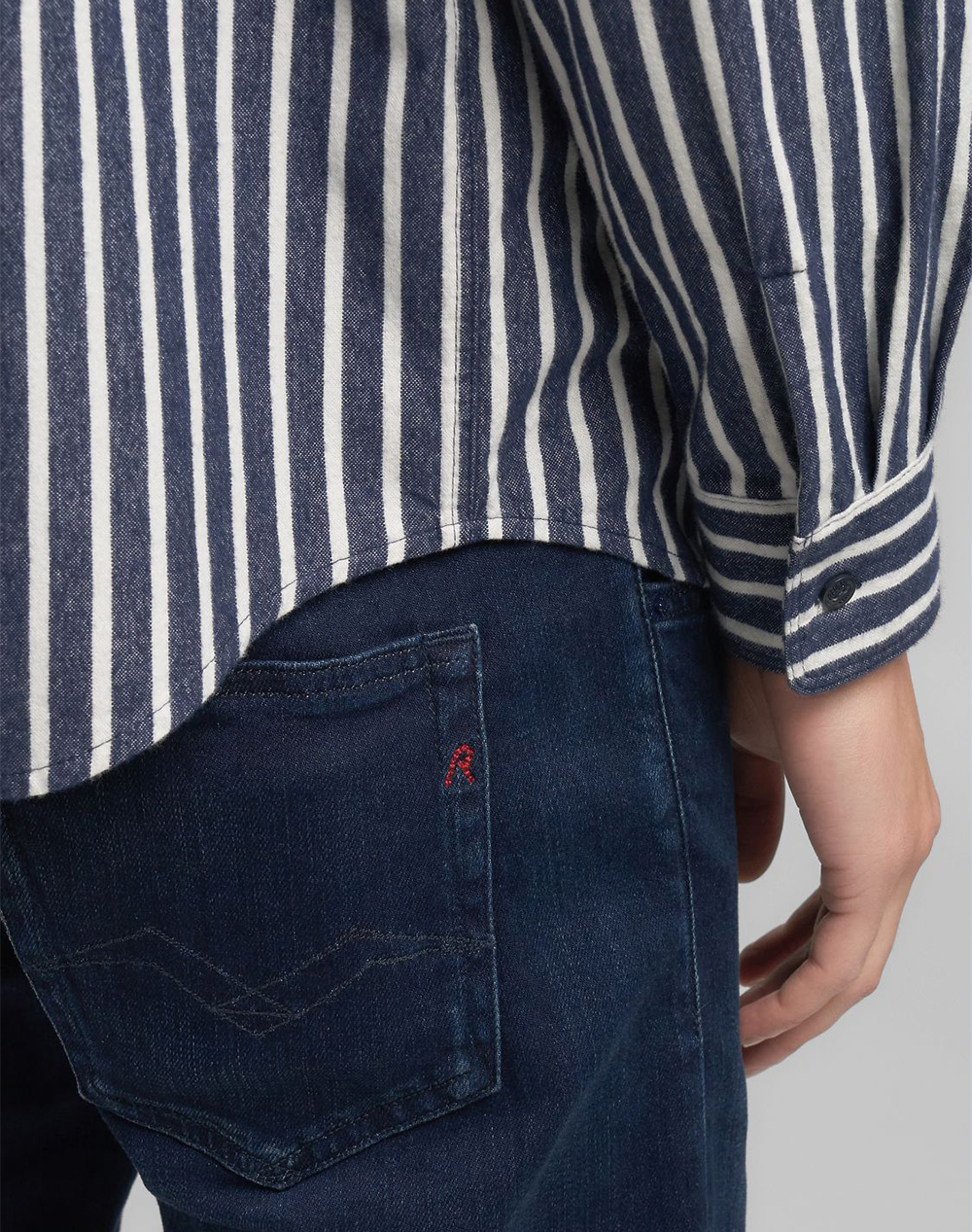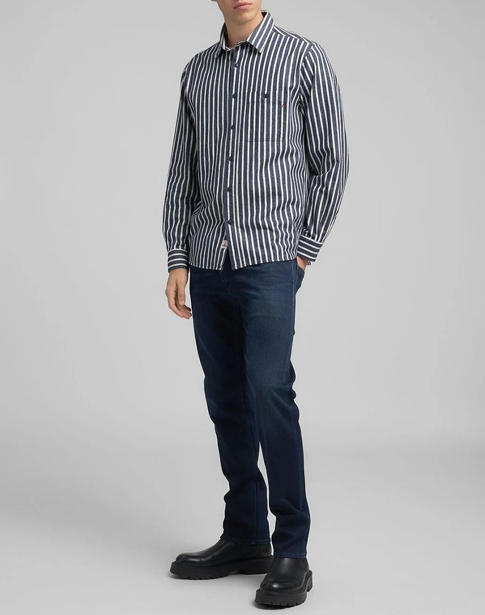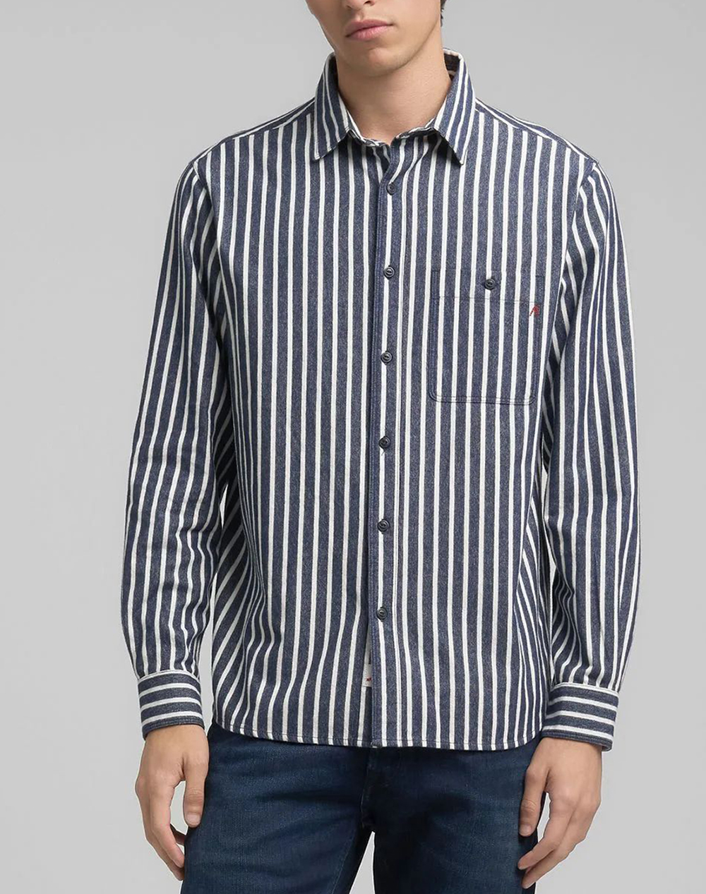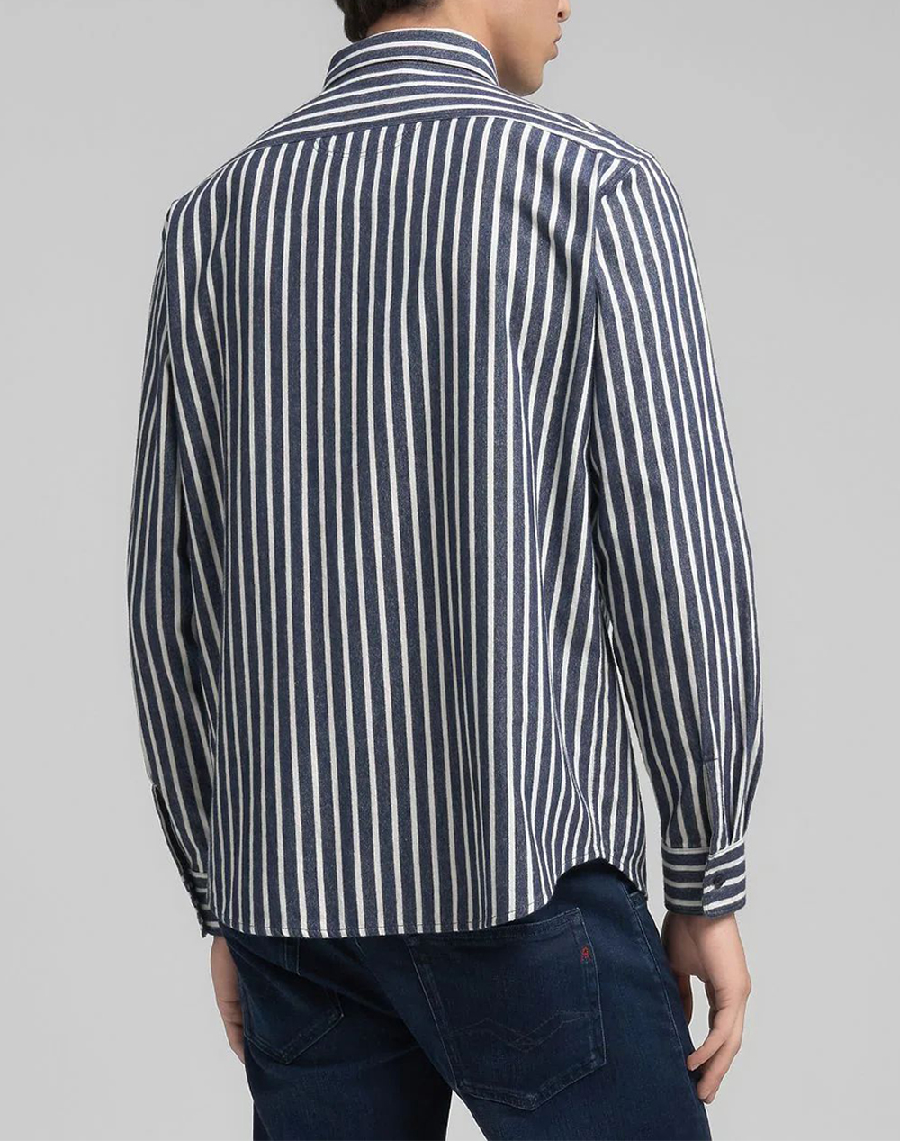 Men's shirt, regular fit, long sleeves, with striped pattern, chest pocket and front button closure. (Composition: 100% Cotton)