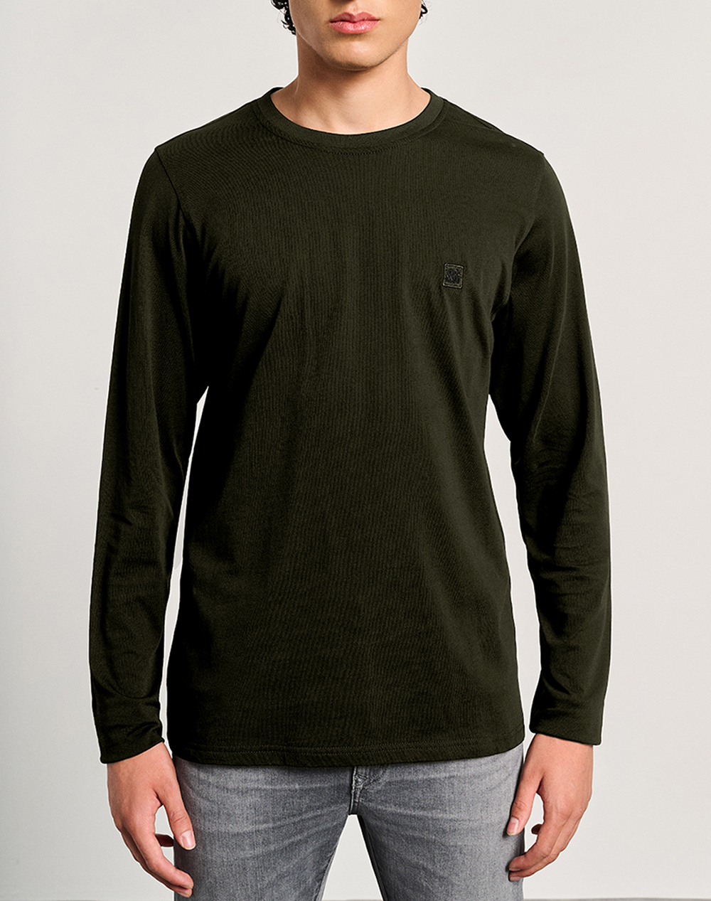 Men's t-shirt, in a modern line, long sleeves, with a round neckline and logo on the chest. (Composition: 100% Cotton)