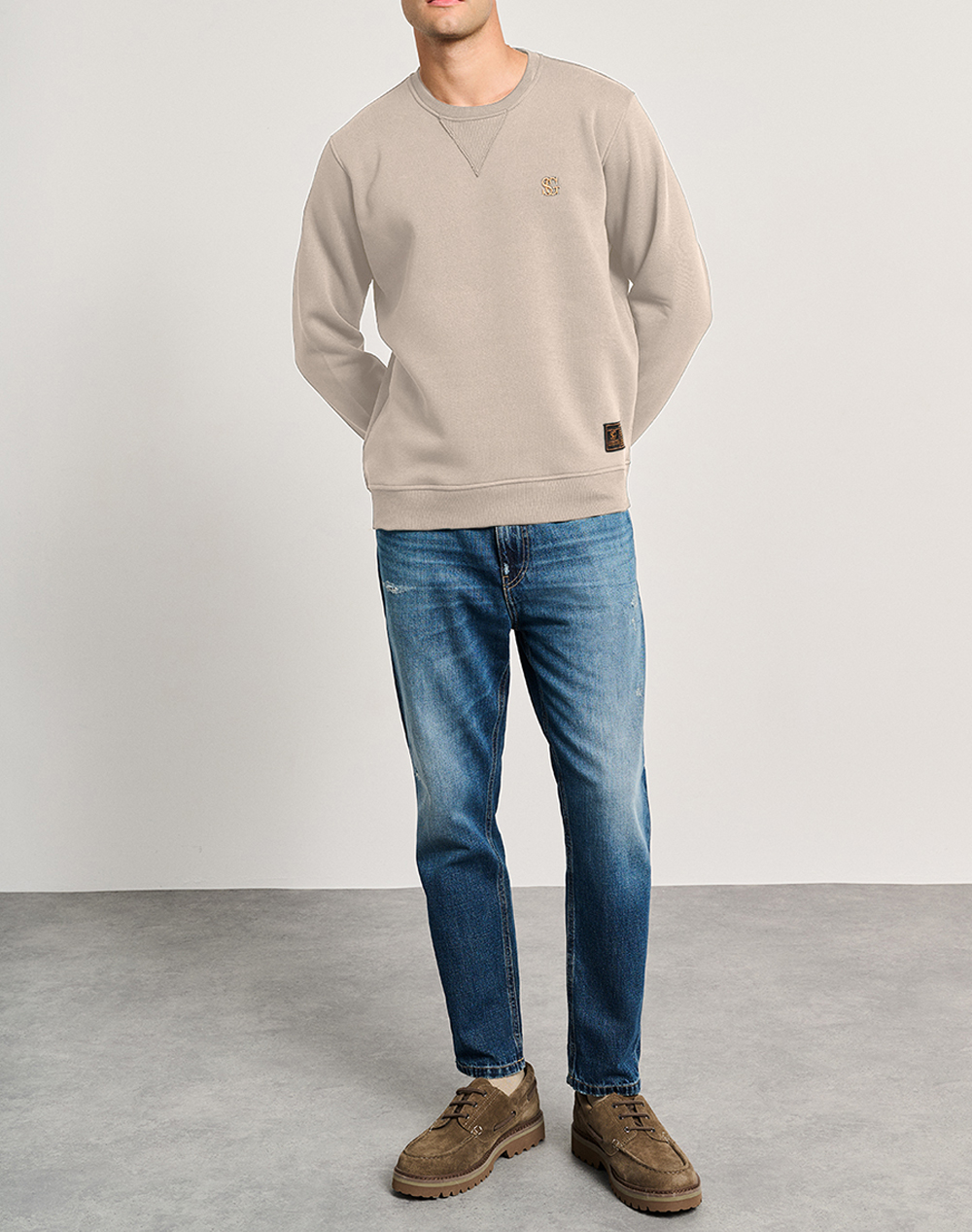 Men's sweatshirt, regular fit, long sleeve, with round neckline and embroidered logo on the chest. (Composition: 65% Cotton, 35% Polyester)