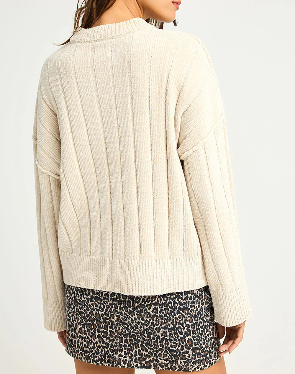 Γυναικεία πλεκτή μπλούζα, σε κανονική γραμμή, με στρογγυλή λαιμόκοψη, σχέδιο με ρίγες και τελείωμα rib. (Σύνθεση: 100% Πολυεστέρας)
