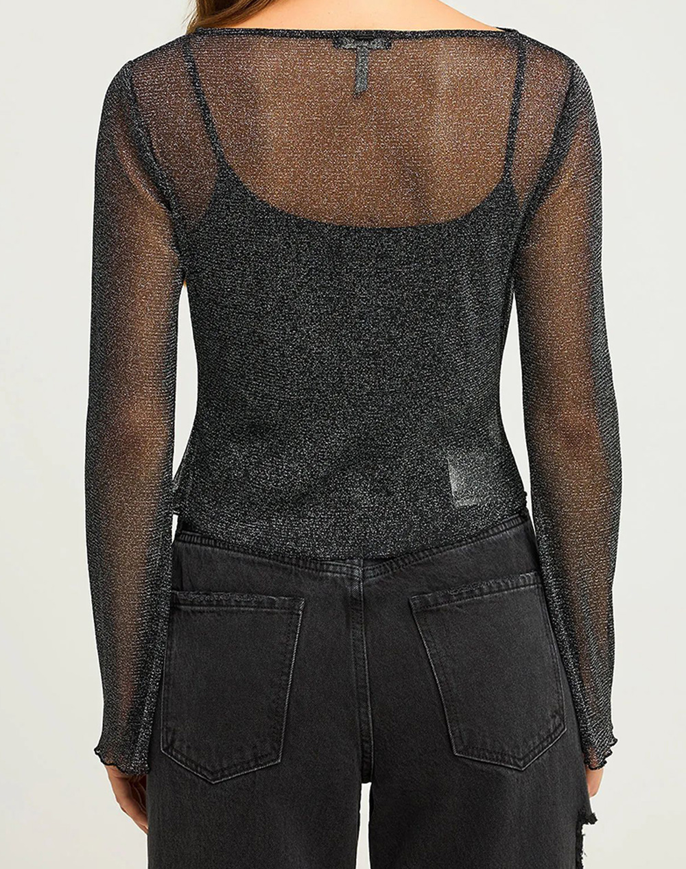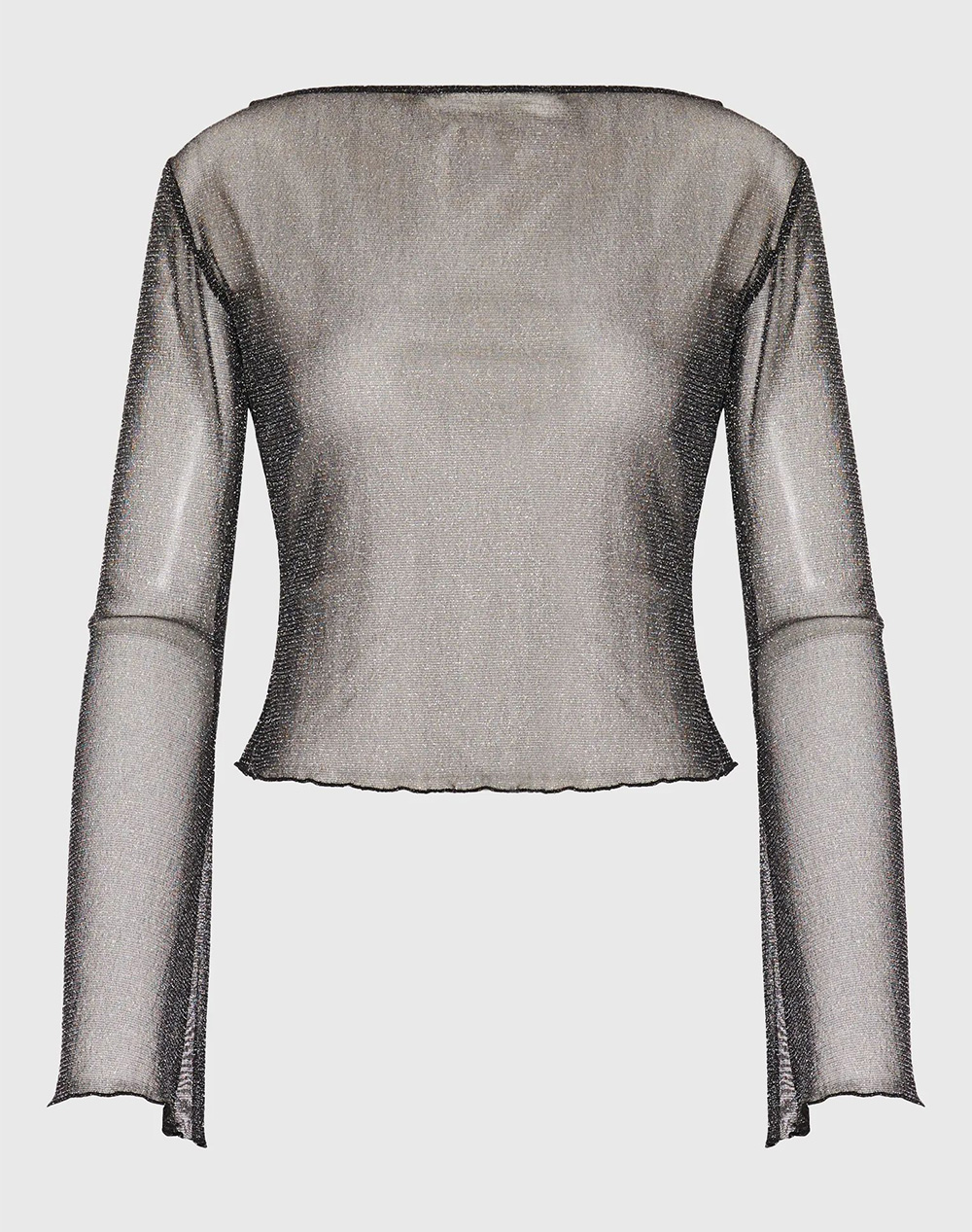 Γυναικεία μπλούζα, σε κανονική γραμμή, μακρυμάνικη, με διαφάνεια και φαρδύ τελείωμα στα μανίκια. (Σύνθεση: 95% Πολυεστέρας, 3% Ελαστομερής Πολυουρεθάνη, 2% Μεταλλική Ίνα)