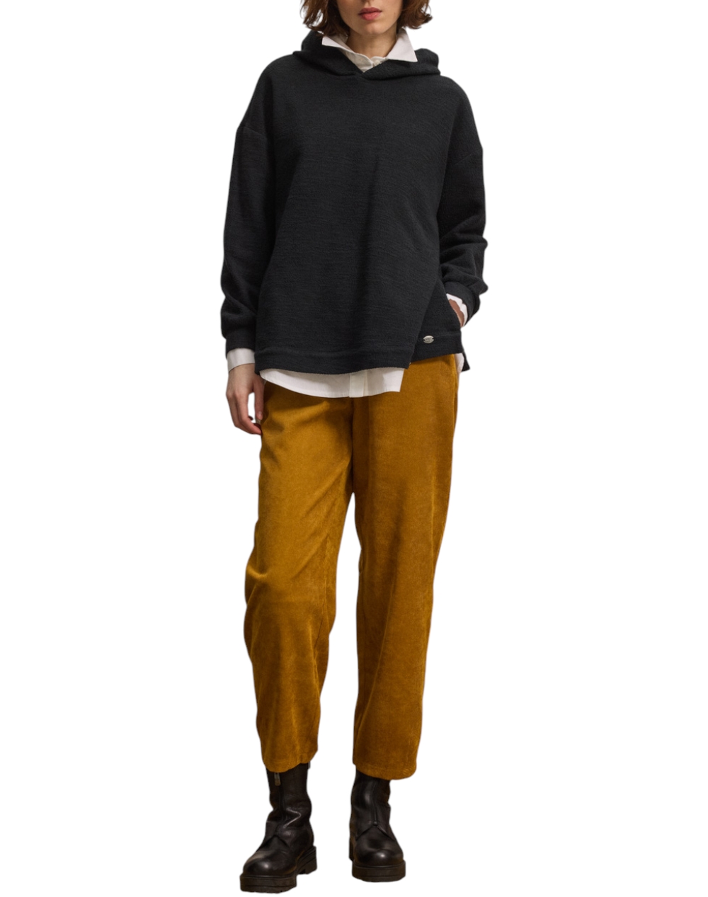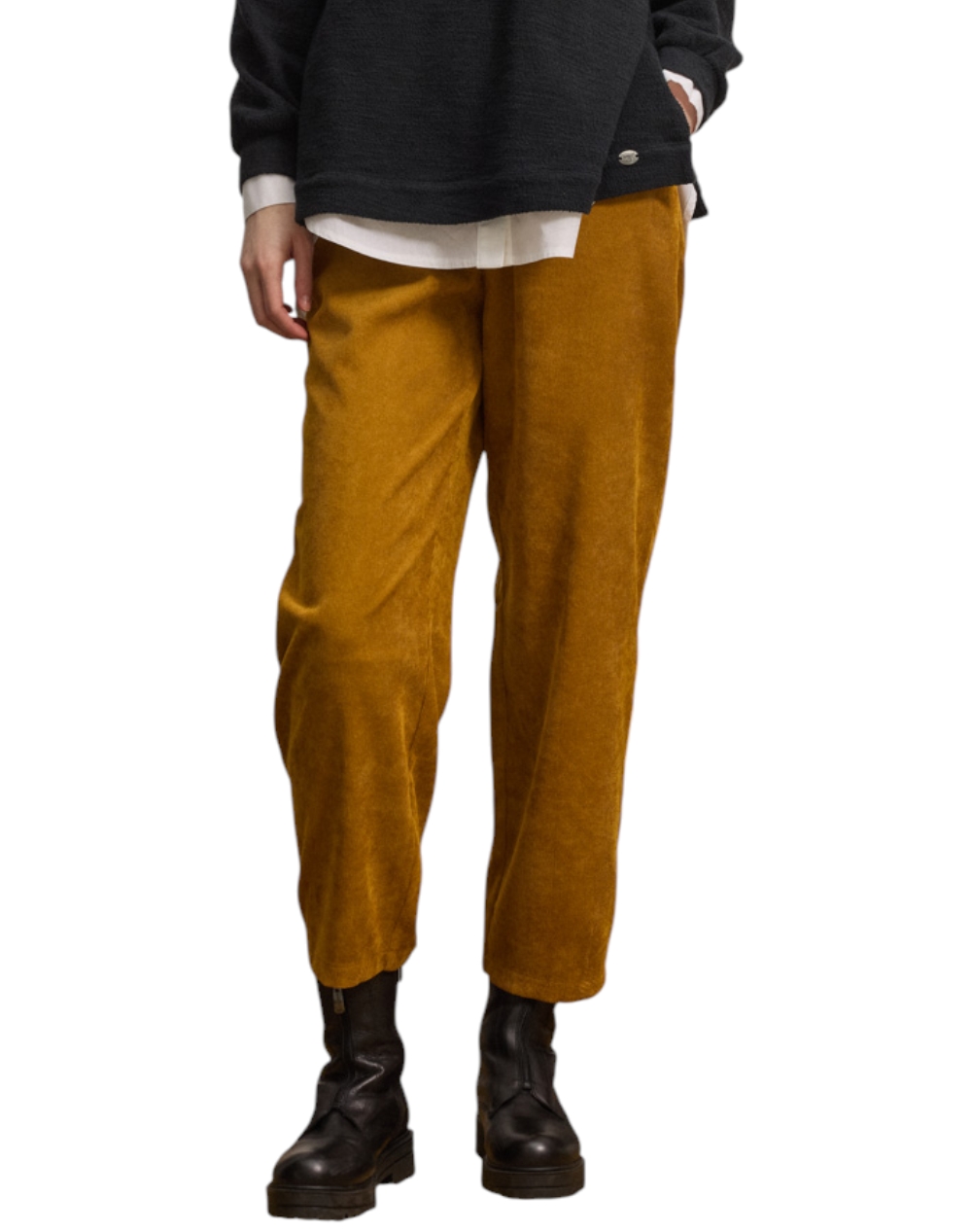 Γυναικείο κοτλέ παντελόνι, σε άνετη γραμμή, ψηλόμεσο, με πιέτες μπροστά, λάστιχο στο πίσω μέρος, τσέπες και κλείσιμο μπροστά με κουμπί και φερμουάρ. (Σύνθεση: 98% Πολυεστέρας, 2% Ελαστάνη)