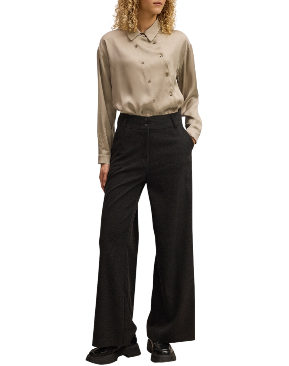 Γυναικείο παντελόνι, σε κανονική γραμμή, ψηλόμεσο, με τσέπες και κλείσιμο μπροστά με κουμπί και φερμουάρ. (Σύνθεση: 69% Πολυεστέρας, 28% Ρεγιόν, 3% Ελαστάνη)