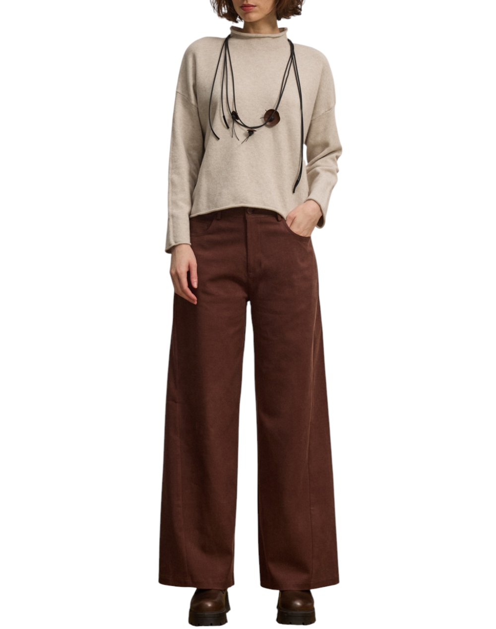 Γυναικείο παντελόνι, σε φαρδιά γραμμή, με πεντάτσεπο σχλεδιο και κλείσιμο μπροστά με κουμπί και φερμουάρ. (Σύνθεση: 49% Βαμβάκι, 48% Λυοσέλ, 3% Ελαστάνη)