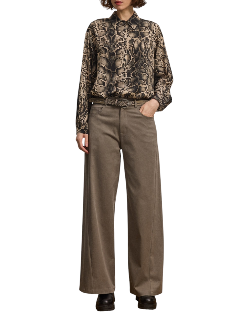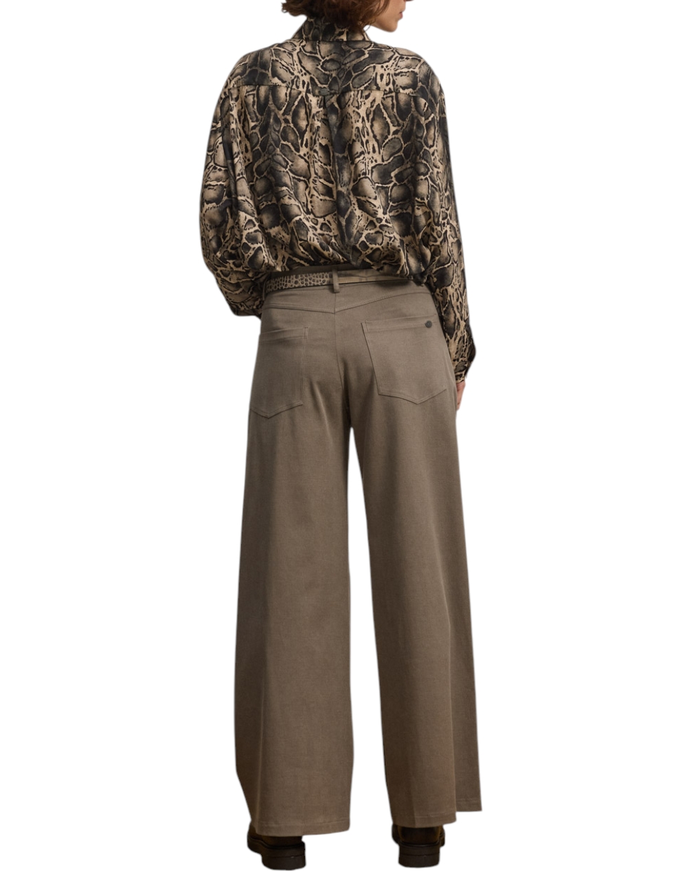 Γυναικείο παντελόνι, σε φαρδιά γραμμή, με πεντάτσεπο σχλεδιο και κλείσιμο μπροστά με κουμπί και φερμουάρ. (Σύνθεση: 49% Βαμβάκι, 48% Λυοσέλ, 3% Ελαστάνη)