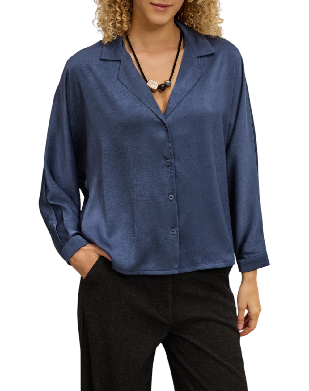 Women's shirt, in a comfortable fit, solid color, long sleeves, with a satin look and button closure at the front. (Composition: 100% Polyester)