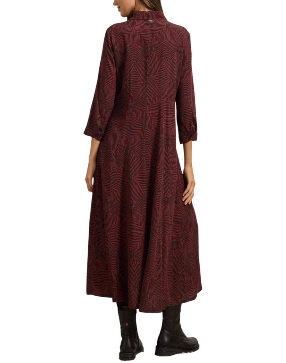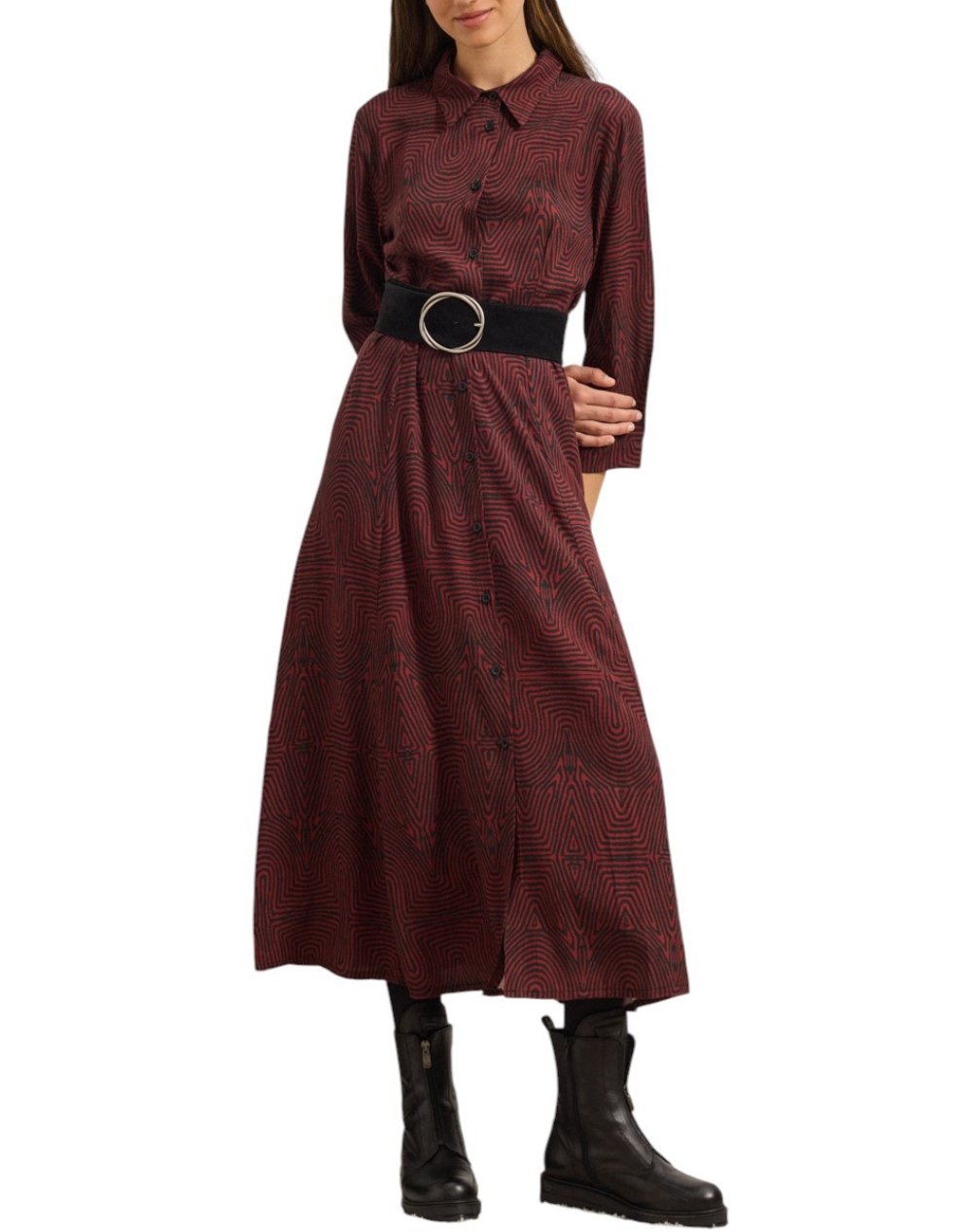 Women's midi dress, regular fit, long sleeves, with geometric print, classic collar and full-length button closure. (Composition: 100% Viscose)