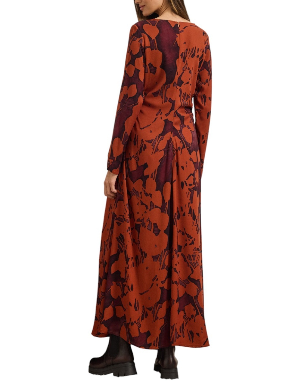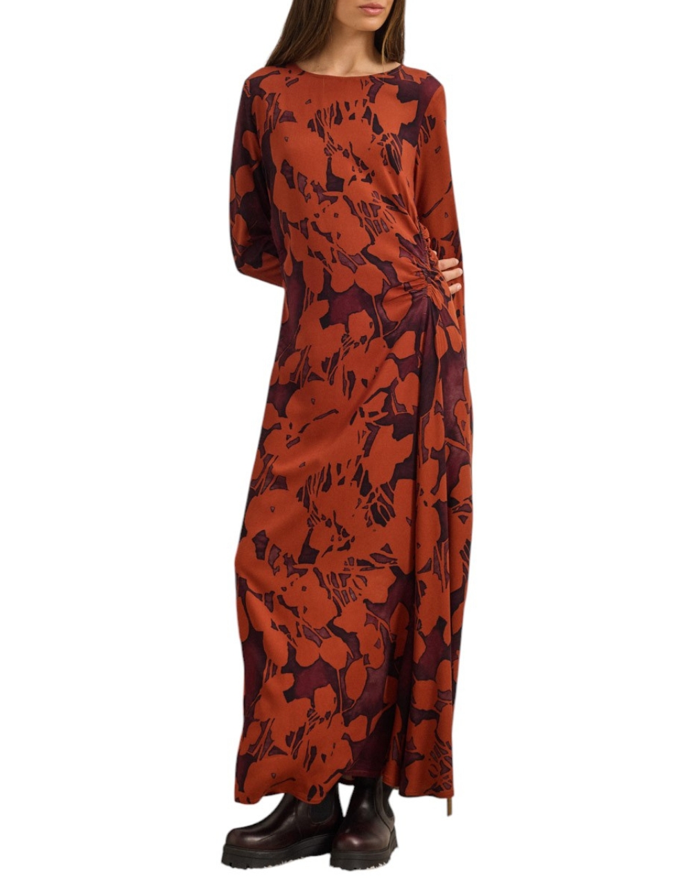 Women's midi dress, regular fit, long sleeves, floral, with round neckline, side ruffles and back zipper closure. (Composition: 100% Ecovero Viscose)