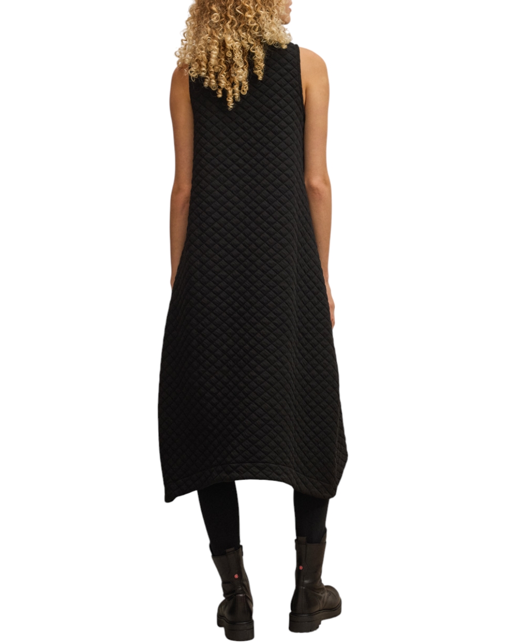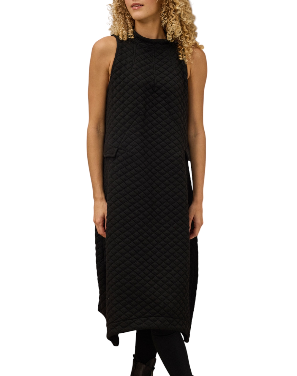 Women's midi dress, in a comfortable fit, with a quilted design, asymmetrical hem and decorative front pockets. (Composition: 42% Viscose, 53% Polyester, 5% Lyocell)