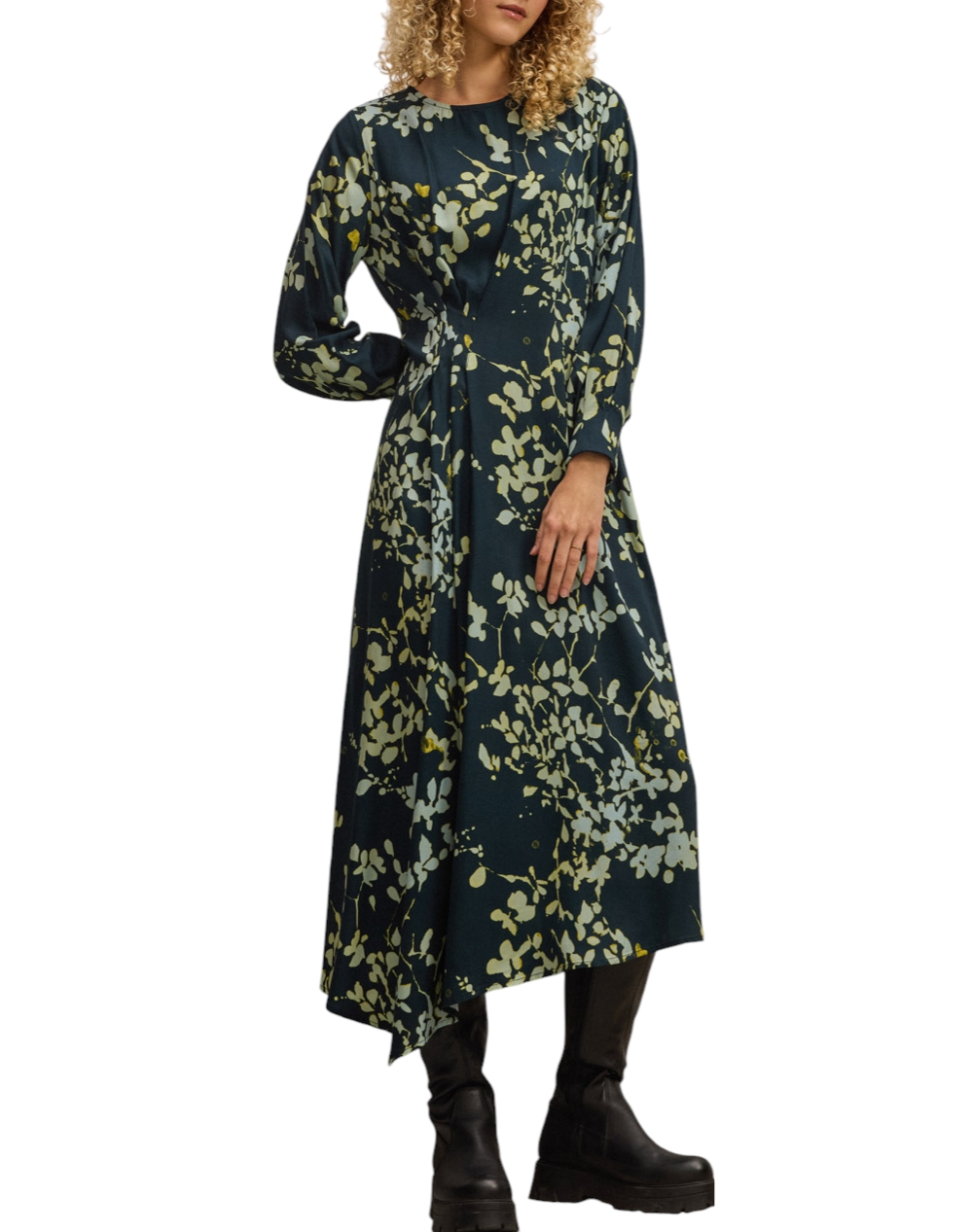 Women's dress, regular fit, long sleeve, with floral print, asymmetrical line with side opening and back closure with invisible zipper. (Composition: 100% Ecovero Viscose)