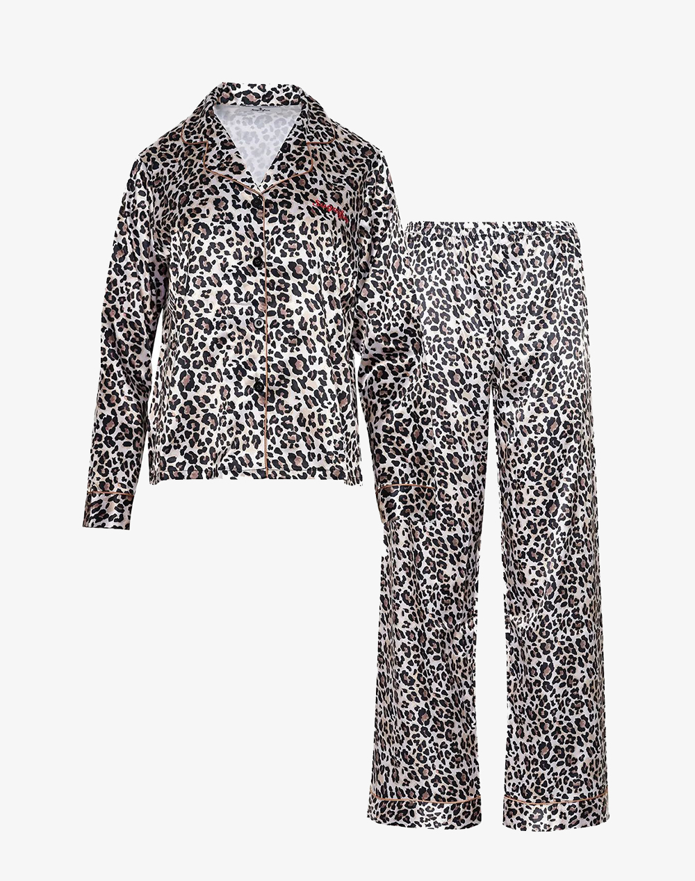 Women's satin pajamas, in a comfortable fit, long sleeves, with an animal - print pattern and button closure at the front and pants in the same pattern, with elastic at the waist. (Composition: 95% Polyester, 5% Elastane)