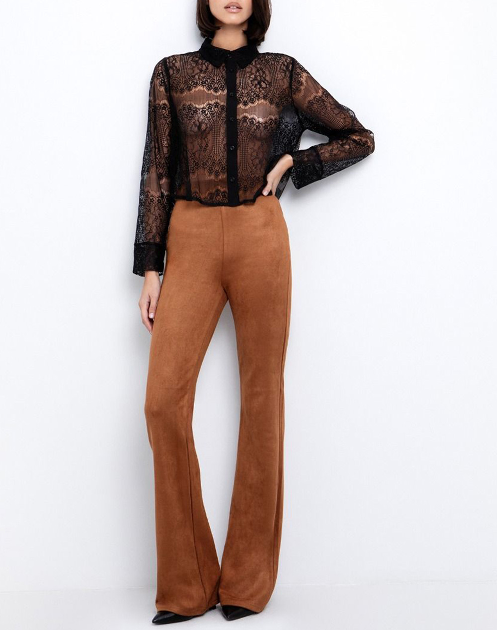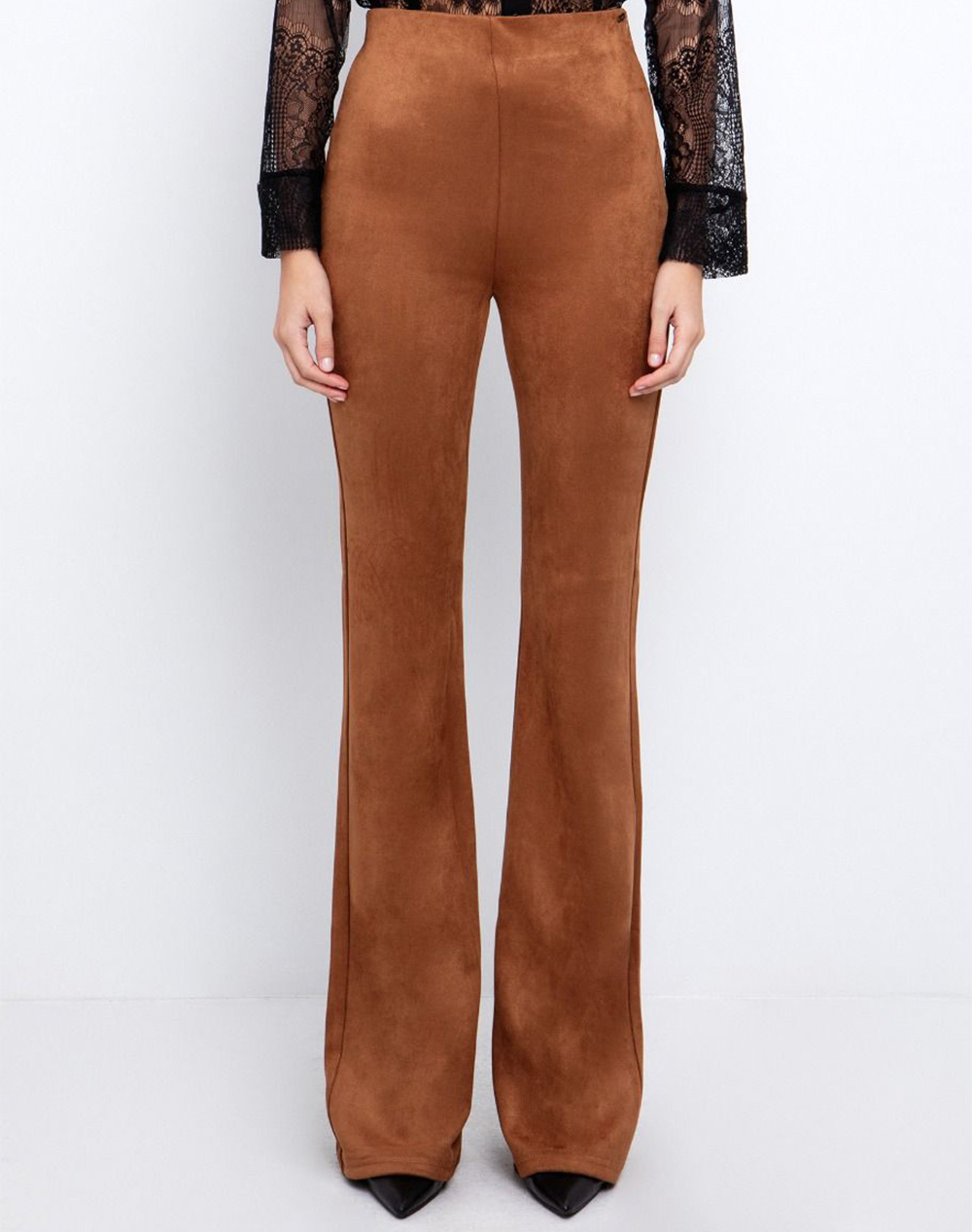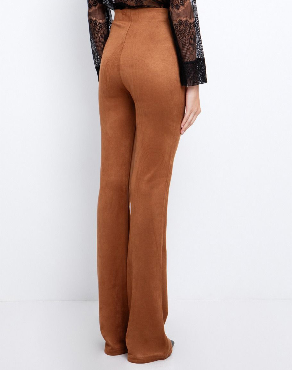 Women's suede pants, regular fit, high waist, with elastic waist and side closure with hidden zipper. (Composition: 95% Polyester, 5% Elastane)