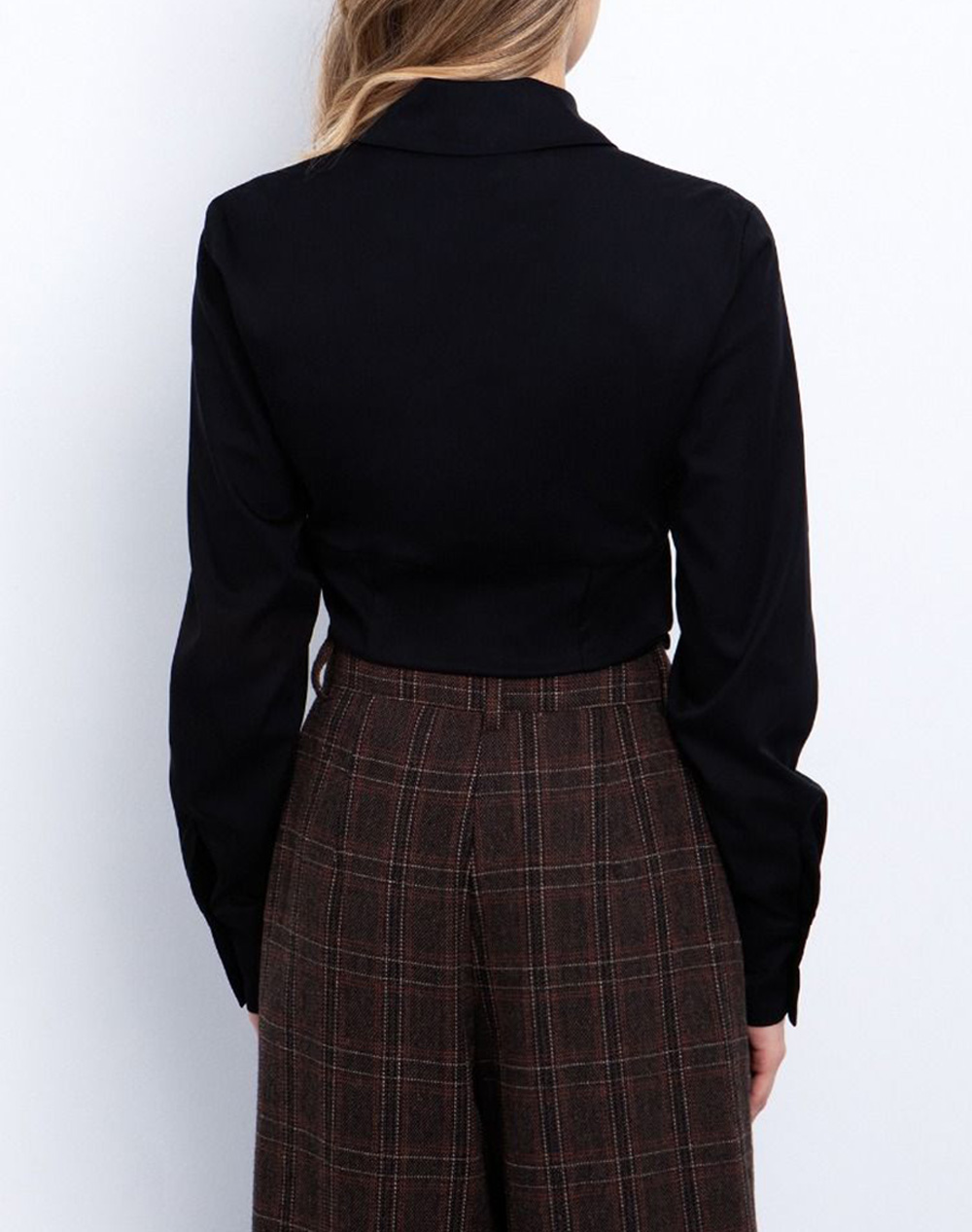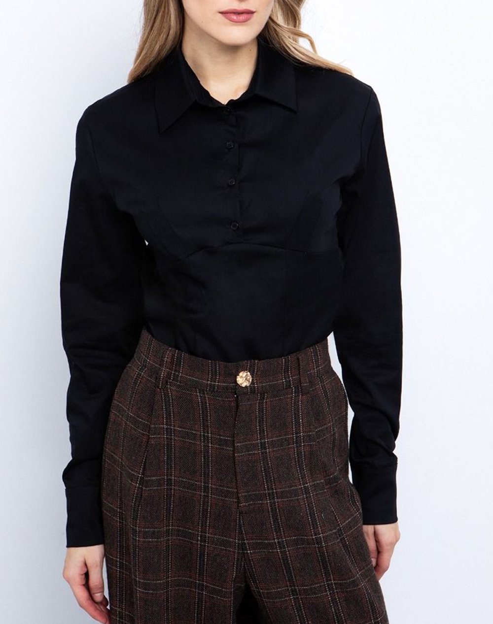 Women's shirt, fitted, long-sleeved, solid color, with accented seams and front button closure. (Composition: 69% Cotton, 26% Polyamide, 5% Elastane)